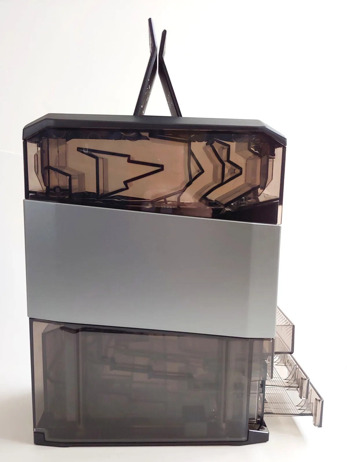 O carregador tem um design de torre. As baterias são carregadas pela parte superior, enquanto as células carregadas e defeituosas são despejadas em bandejas localizadas na frente. A máquina gira por vários minutos sempre que é ligada para verificar se há células nos alimentadores e carregar pares para análise e carregamento. Até 12 células carregadas de cada tipo podem ser armazenadas dentro da máquina, e as bandejas AA e AAA são projetadas para ejetar duas células de cada vez quando são abertas. A bandeja de células ruins não tem esse limite.