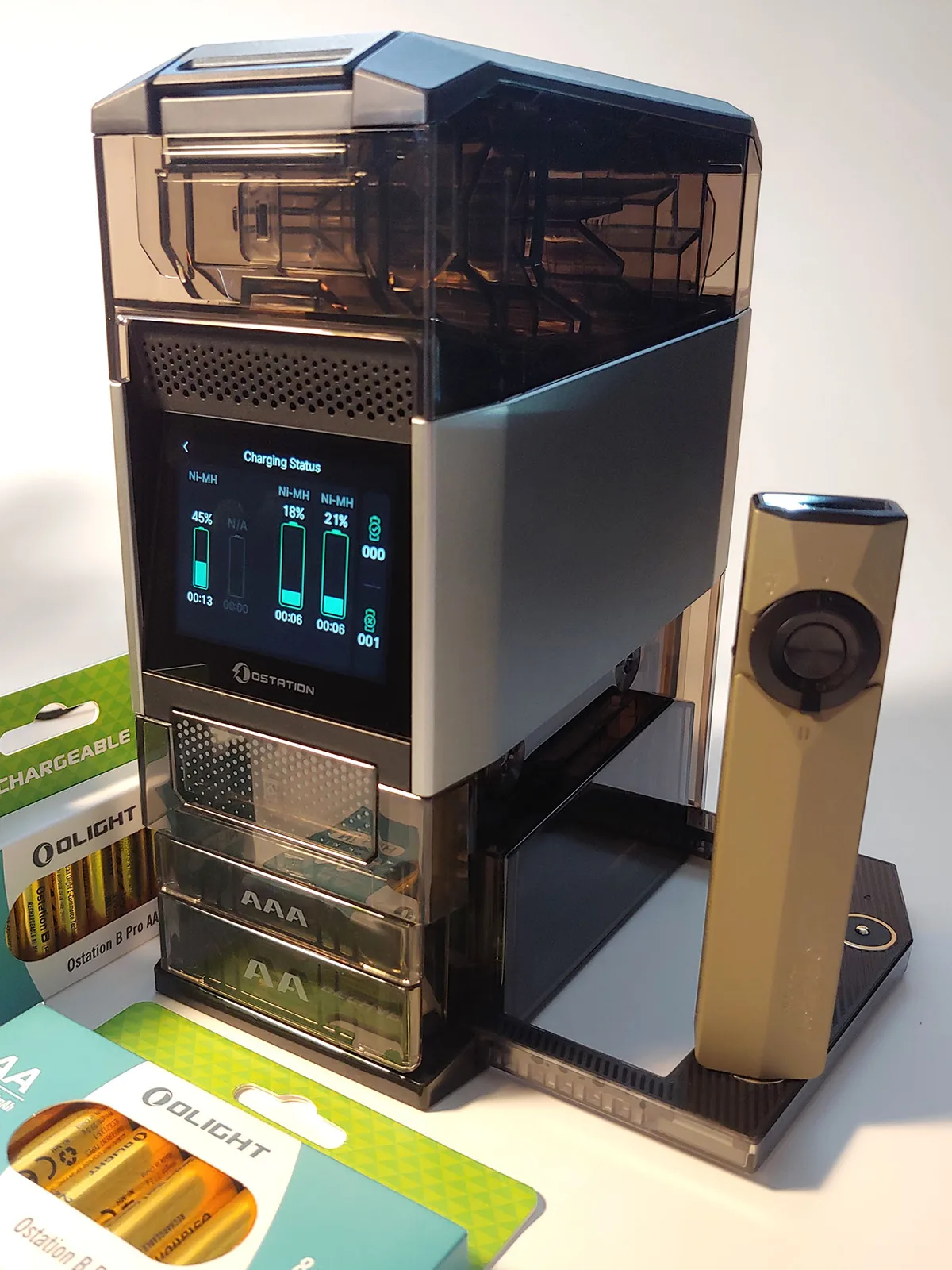 Olight Ostation 2 Pro prático: Conveniente carregador de pilhas AA/AAA e lanterna