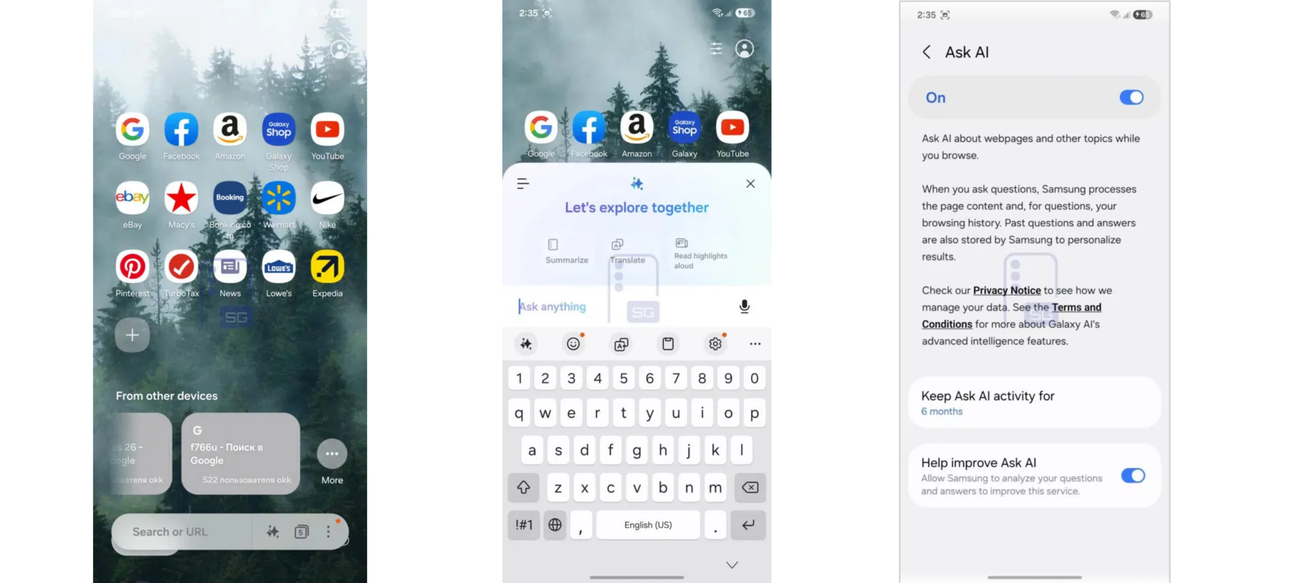 De acordo com um relatório do site SammyGuruvazaram versões do One UI 9 apontam para novas adições ao Samsung Internet. Diz-se que o navegador tem uma nova barra de pesquisa compacta em um layout flutuante posicionado próximo à parte inferior da tela. Ela inclui opções como pesquisa, acesso à IA, guias recentes e um menu.