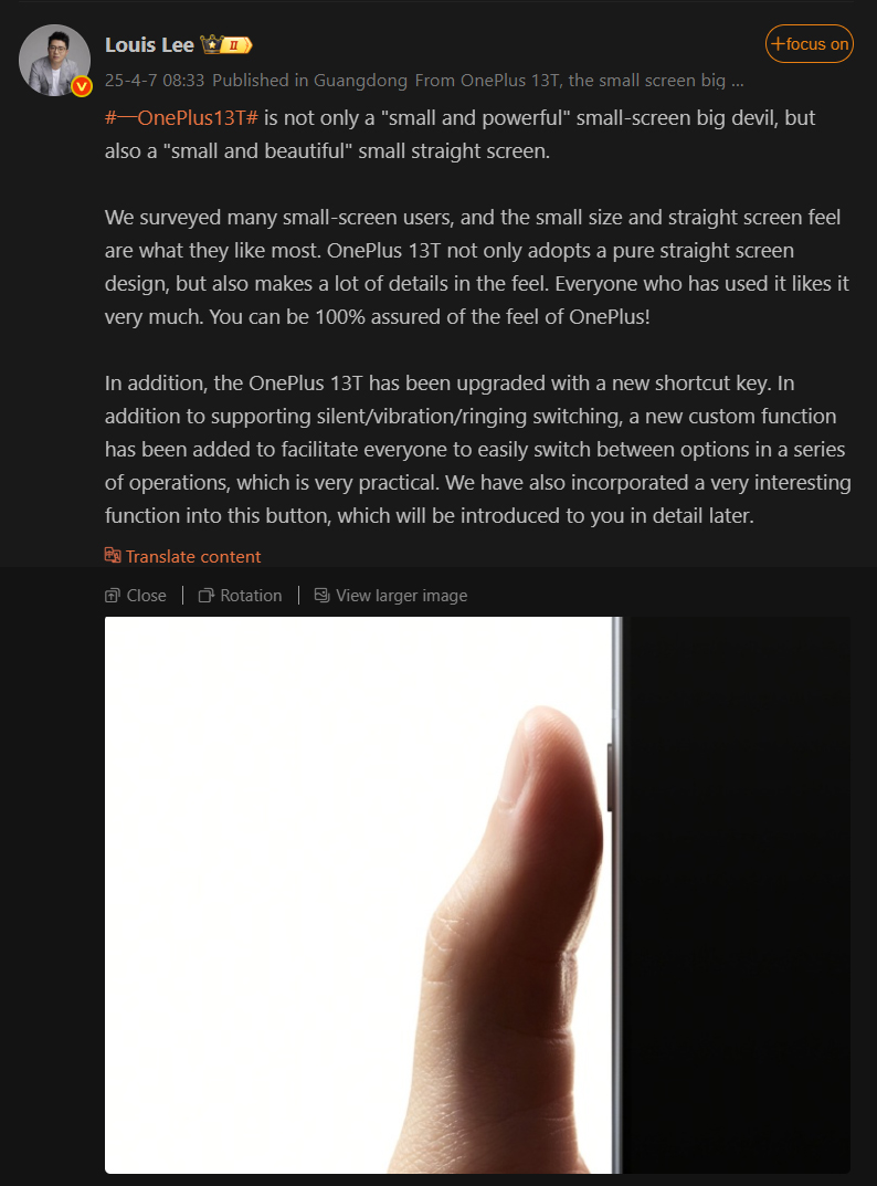 Louis Lee também compartilha que a empresa incorporou uma função "muito interessante" na tecla de atalho do OnePlus 13T, mas não entrou em detalhes. No entanto, o funcionário da empresa prometeu compartilhar o que seria essa função "muito interessante" por meio de futuros teasers.