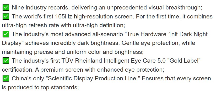 Devido a limitações nos materiais luminescentes e na tecnologia de circuitos, o setor não consegue atingir as especificações de 165 Hz e 2K simultaneamente. A tela X3 de 165 Hz + 1,5K é a solução ideal e o auge da tecnologia de exibição de telefones celulares. Antes dela, a resolução mais alta para telas com taxa de atualização ultra-alta de 165 Hz em telefones celulares era de apenas 1080p. Essa tela X3 é a primeira tela de 165 Hz + 1,5K do setor. Após anos de validação no mercado, as telas de 1,5K são agora um excelente equilíbrio entre a qualidade de exibição de primeira linha e a eficiência energética em muitos telefones principais das principais marcas, portanto, não há necessidade de se preocupar com a experiência real. Em segundo lugar, a taxa de atualização ultra-alta de 165 Hz oferece uma experiência suave sem precedentes e é o futuro das telas de telefones celulares.