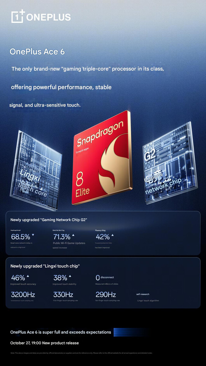 Agora, a OnePlus confirmou que o Ace 6 conta com o Snapdragon 8 Elite da Qualcomm, assim como o OnePlus 13 antes dele. Além disso, o Ace 6 conta com um Gaming Network Chip G2 atualizado, que a OnePlus afirma oferecer melhor desempenho de celular e Wi-Fi do que os exemplos anteriores. Da mesma forma, o dispositivo apresenta um Lingxi Touch Chip para maximizar a capacidade de resposta da tela sensível ao toque durante os jogos.