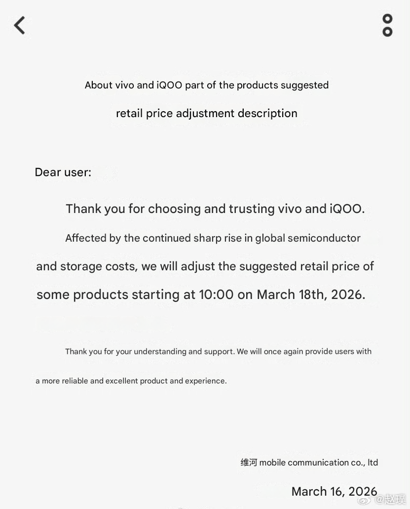 Além disso, a Vivo e sua submarca iQoo anunciaram que aumentarão os preços de alguns dispositivos a partir de 18 de março na China. Um vazamento anterior vazamento sugeriu que a próxima geração de telefones principais da OnePlus, iQoo e Redmi com chipsets de 2nm poderia começar em 5.000 yuans (~$725). Os aumentos de preço na China também podem ter implicações nos mercados globais, embora nenhum aumento de preço global tenha sido anunciado ainda.