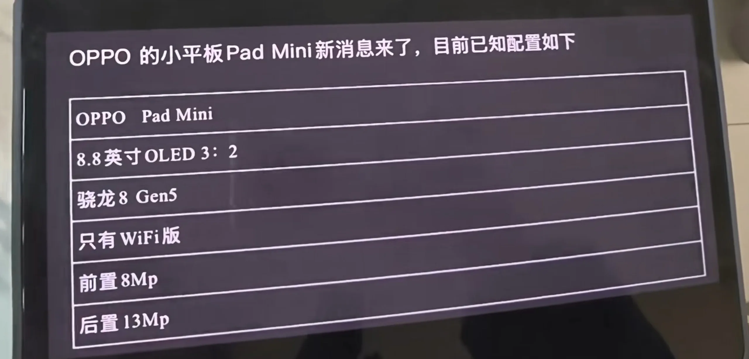 Segundo informações, estamos diante de uma tela OLED personalizada de 8,8 polegadas com alta taxa de atualização, o que já o coloca em concorrência direta com o MatePad Mini.