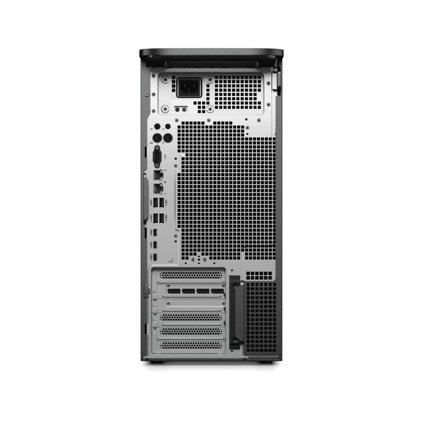 O Dell Pro Precision 9 T4 é um PC em torre que apresenta um design elegante totalmente preto e muitas portas. Na parte interna, o PC desktop pode ser equipado com um Intel Xeon 698X de até 86 núcleos com um TDP de 350 W e um clock de aumento de 4,8 GHz. Essas CPUs Xeon podem ser emparelhadas com as GPUs RTX 50 ou Nvidia RTX/AMD Radeon Pro para estações de trabalho. A Dell anuncia que o Pro Precision 9 T4 pode ser equipado com uma GPU de 600 W, duas de 300 W ou quatro de 50 W.