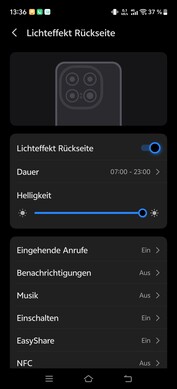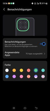 Além de várias configurações para diferentes jogos do Android, o elemento de luz dinâmica na parte traseira pode ser usado para notificações. Os aplicativos podem ser configurados ou desativados individualmente. Tanto a cor quanto o efeito da tela podem ser personalizados de acordo com a preferência pessoal