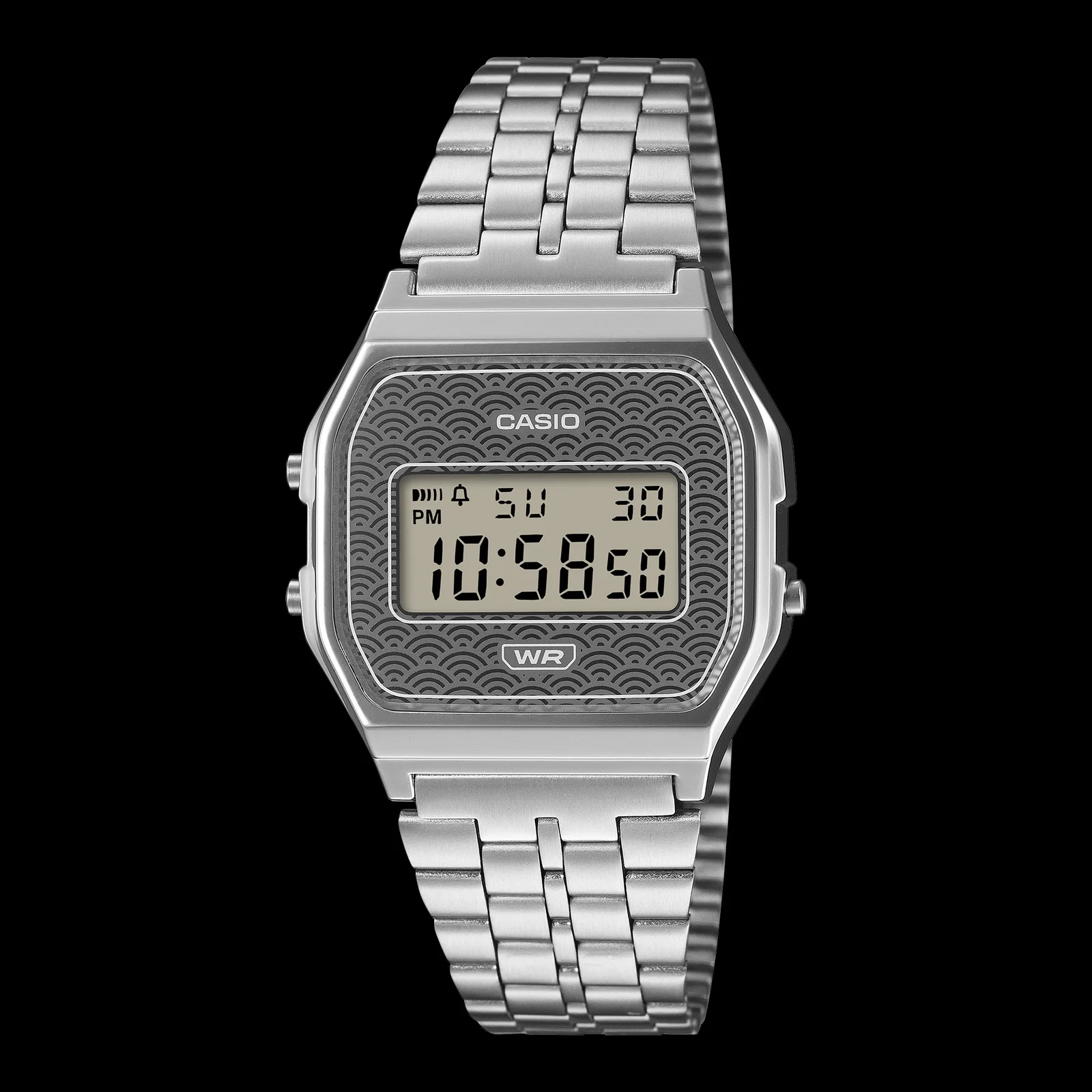 A atualização é principalmente visual. Ambos os modelos apresentam motivos de ondas no estilo Seigaiha no mostrador - um padrão tradicional japonês composto de arcos repetidos. O azul A159WEVJ-2 usa um tom índigo profundo, enquanto o A159WEVJ-7 vem com um acabamento cinza-prateado mais suave. A Casio afirma que o mostrador usa elementos impressos e deposição de vapor, e é por isso que ele tem uma aparência levemente cintilante.