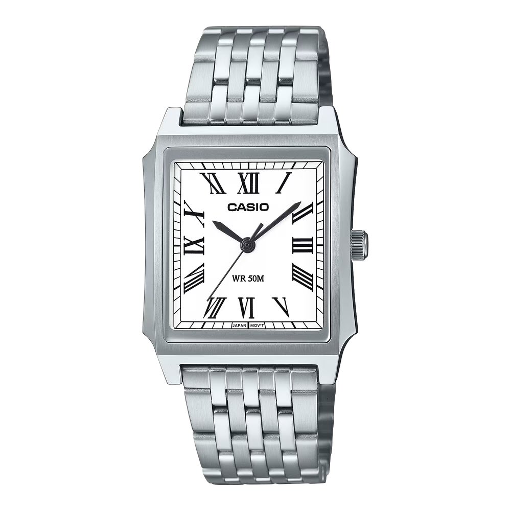 Quase um ano depois de sua Estreia na Europaa Casio está finalmente trazendo dois relógios analógicos clássicos em estilo tanque para o mercado americano. O Casio MTP-B190D-7BV e o MTP-B190D-1BV são orgulhosos acréscimos à Coleção Timeless da empresa. Ambos os modelos apresentam pulseiras de aço inoxidável de alta qualidade e algarismos romanos lindamente proeminentes que chamam a atenção instantaneamente.