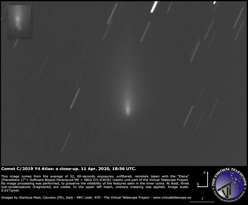 Em 2020, astrônomos descobriram o cometa C/2019 Y4 (ATLAS) e pensaram que ele ofereceria um espetáculo único, visível da Da Terra. No entanto, ele se fragmentou em vários pedaços, e alguns astrônomos acreditam que esses fragmentos ainda podem estar no sistema solar.