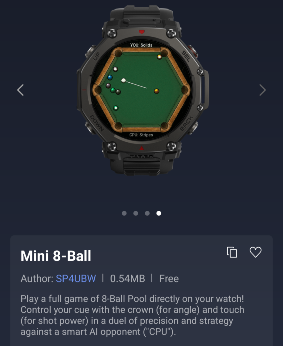 Há também dois novos jogos para usuários de wearables Amazfit. O primeiro é o Mini 8-Ball, em que o senhor pode jogar uma partida de bilhar 8-Ball contra um jogador gerado por IA no seu relógio. O ângulo do taco de bilhar pode ser ajustado usando a coroa do smartwatch, e a potência é controlada com uma entrada de toque. O segundo é o Quick Math, um aplicativo de treinamento cerebral em que os usuários recebem uma pontuação para resolver equações em um período fixo de tempo.