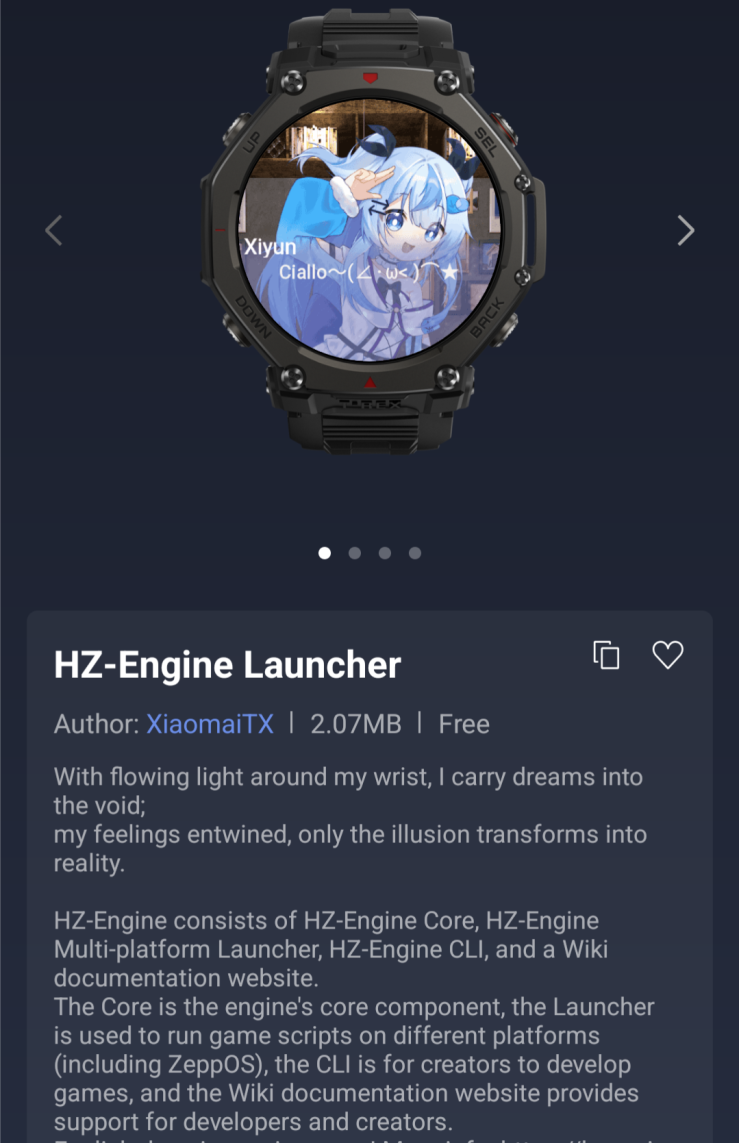 O novo aplicativo mais popular, de acordo com o gráfico Zepp OS Weekly Top 50 Downloaded Apps, é o HZ-Engine Launcher. O launcher pode ser usado para executar scripts de jogos para o mecanismo de romance visual no Zepp OS. Outras adições recentes populares incluem o cliente Telegram tgwatch e o CaferoChat, descrito como um "aplicativo de bate-papo minimalista para smartwatch".