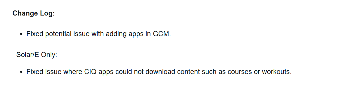 A segunda correção de bug é apenas para os usuários dos wearables Instinct 3 Solar e Instinct E(atualmente, US$ 199,99 na Amazon). Isso resolve um problema em que os aplicativos Connect IQ não estavam baixando conteúdo, como cursos ou exercícios.