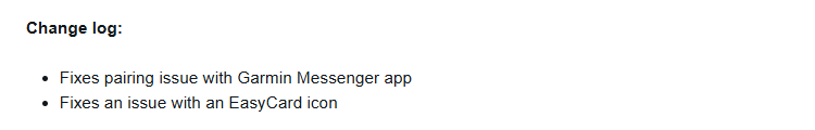 O registro de alterações da versão beta 17.02 é idêntico ao da versão 17.01. Ele lista uma resolução para um problema relacionado ao emparelhamento para o aplicativo Garmin Messenger e também indica que um bug vinculado ao ícone EasyCard foi corrigido. Com base nessas notas de versão, não está claro como essa versão beta difere de sua predecessora estável.