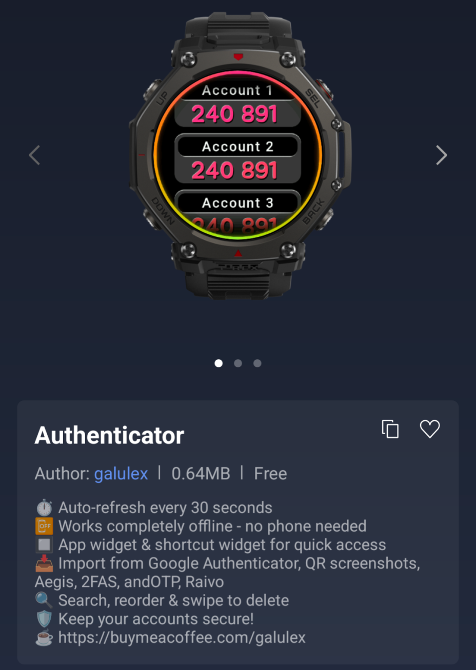 A Zepp Health também observa que o aplicativo Authenticator Mini foi reformulado. Esse software pode ser usado para gerar códigos de autenticação de serviços como Google Authenticator, 2FAS e Aegis. Os códigos devem ser atualizados a cada 30 segundos, e o Mini aplicativo pode funcionar off-line.