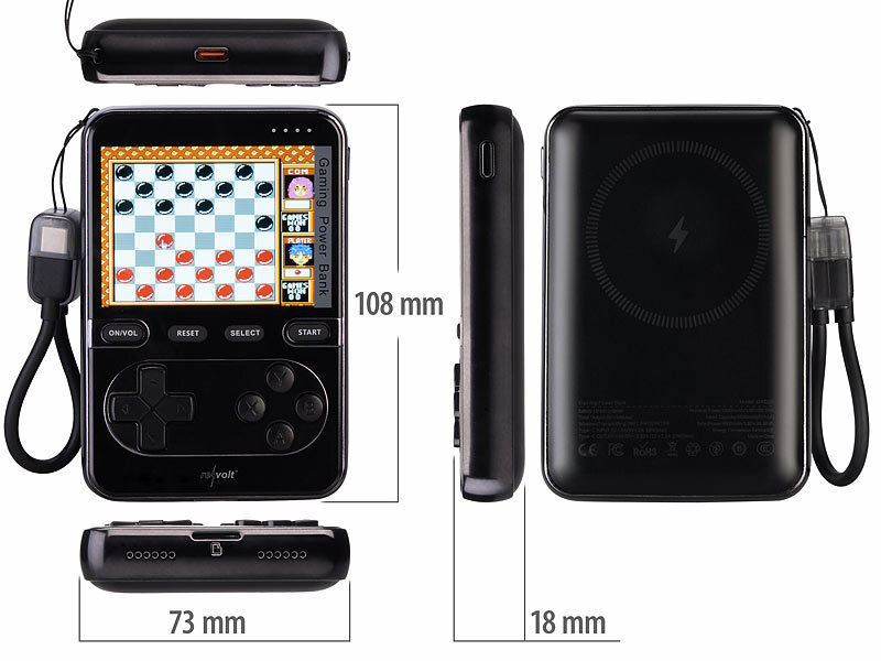 O banco de potência mede cerca de 4,3 x 2,9 x 0,7 polegadas, pesa 7 oz e apresenta uma tela IPS de 2,8 polegadas. Ele não possui joysticks, mas tem um D-pad, quatro botões de ação e botões adicionais para acesso ao menu ou similares. O gadget também tem capacidade de 10.000mAh, o que deve ser suficiente para cerca de 24 horas de jogo. O banco de potência também pode produzir até 20 W via USB-C, o que é suficiente para carregar um smartphone rapidamente, mas não dispositivos maiores, como um laptop ou tablet. Ele também suporta carregamento sem fio Qi de até 15 W.