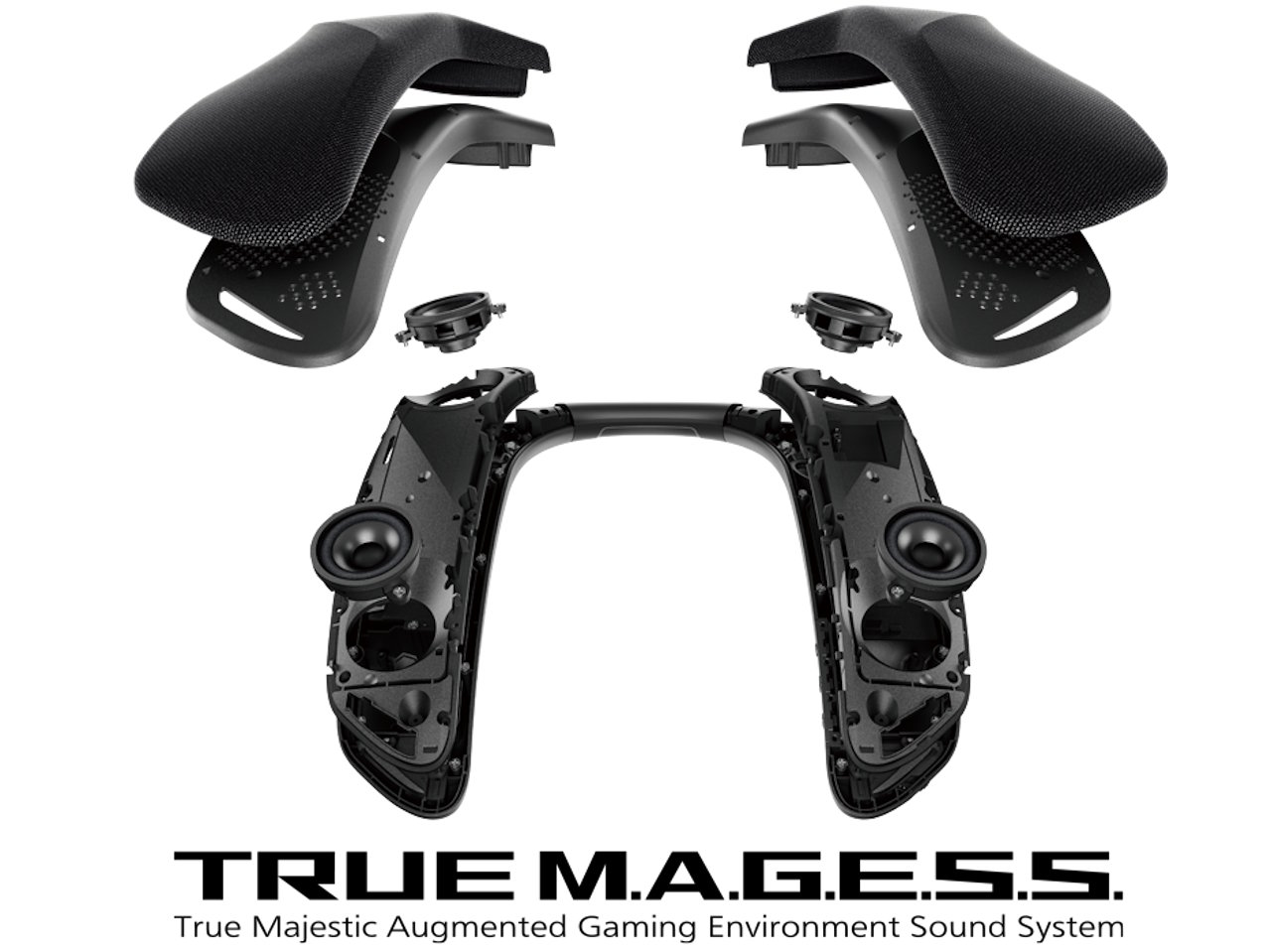 O alto-falante de pescoço é moldado para caber no pescoço. Quatro drivers de cone de 38 mm produzem som surround 4.0, com uma potência total do sistema de oito watts, para uma jogabilidade imersiva por até nove horas entre as cargas, de acordo com a Panasonic. Dois microfones MEMS com cancelamento de ruído AI também estão incluídos.