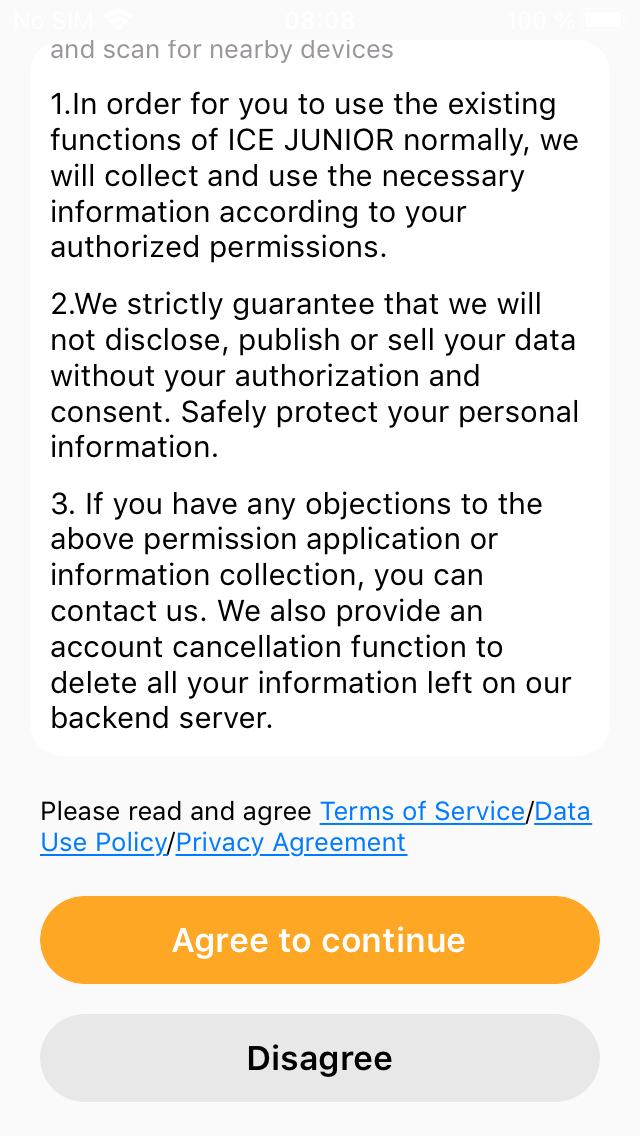 Durante o carregamento, é melhor fazer o download do aplicativo ICE Junior (disponível para Android e iOS), que também pode ser usado no modo "convidado". A leitura da política de privacidade completa, no entanto, dá a impressão de que o fabricante pode coletar uma quantidade razoável de dados, possivelmente armazená-los fora da UE e compartilhá-los com fornecedores terceirizados - o que não é exatamente ideal para um produto infantil. O emparelhamento com o aplicativo é simples, desde que todas as permissões sejam concedidas.