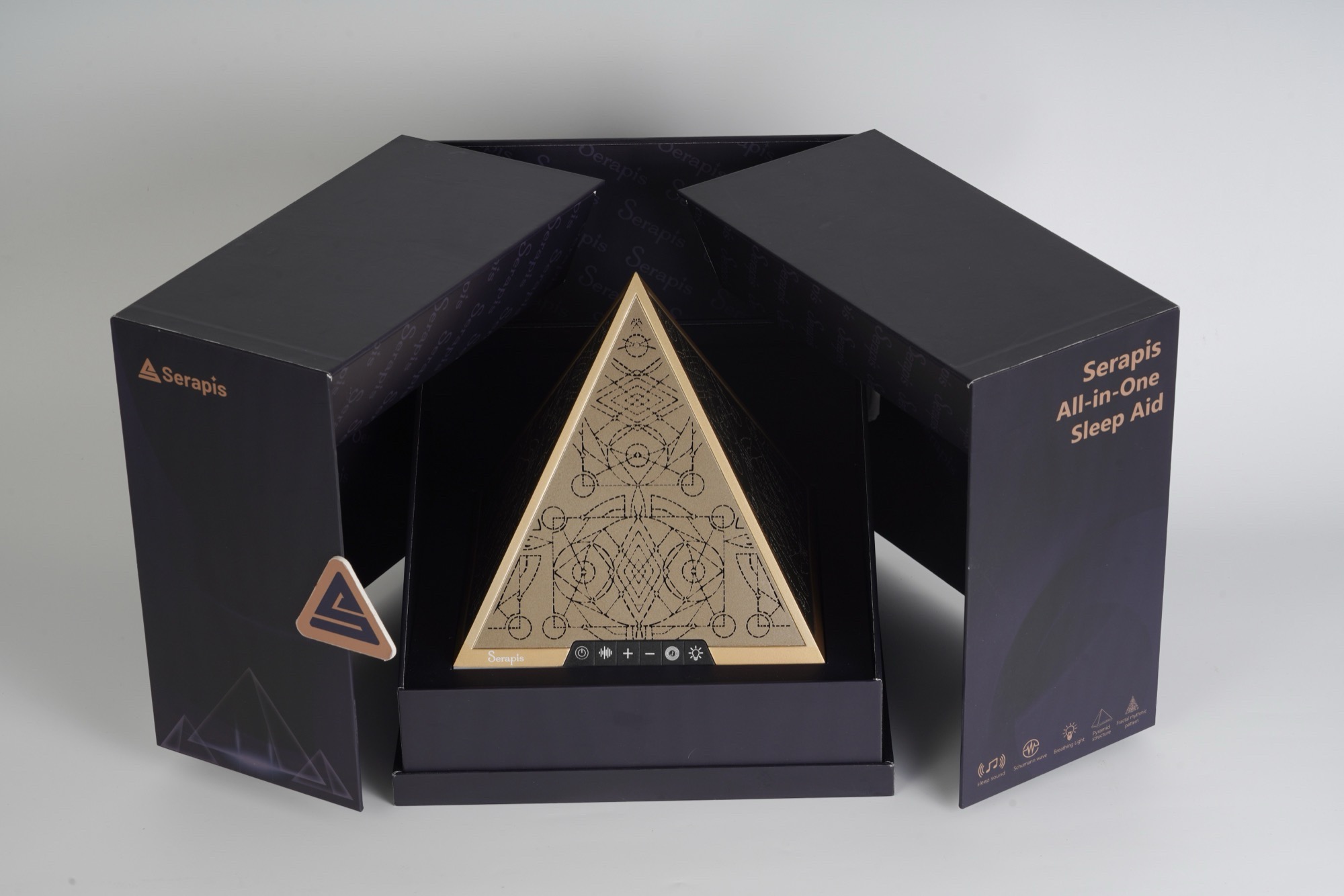 Em segundo lugar, a pirâmide pode reproduzir um ruído constante com uma frequência de 7,83 Hz, conhecida como ressonância de Schumann, que se diz corresponder às ondas eletromagnéticas da Terra. Em terceiro e último lugar, o Serapis pode reproduzir ruído branco em diferentes faixas de frequência, o que pode mascarar o ruído ambiente perturbador. Se esses recursos realmente ajudam os usuários a adormecer, provavelmente varia de pessoa para pessoa. A pirâmide é controlada por botões na parte frontal e não requer um aplicativo.