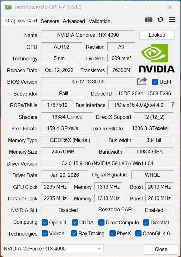 | Palit GeForce RTX 4090 GameRock OC (0.5.0.08fb2d4) | |