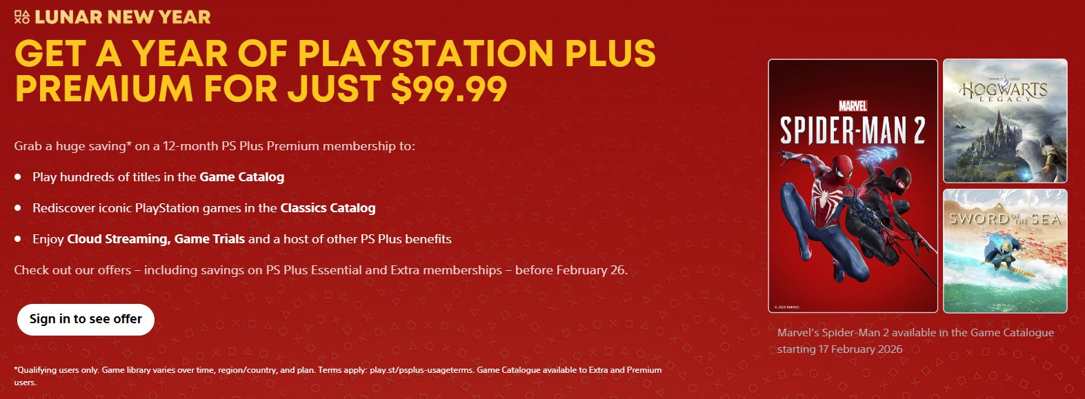 PlayStation Plus Premium e Extra sofrem uma grande queda de preço durante a promoção do Ano Novo Lunar da Sony