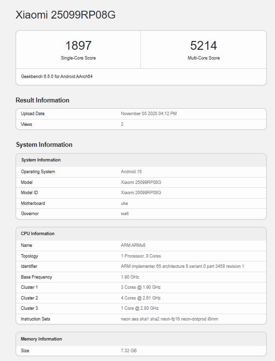 As pontuações testadas para esse novo dispositivo - 1.897 no teste single-core e 5.214 no multi-core - também estão dentro da distância de toque do Xiaomi Pad 7 em nossos testes internos. Além disso, a listagem confirma a presença de 8 GB de RAM e Android 15 no dispositivo.