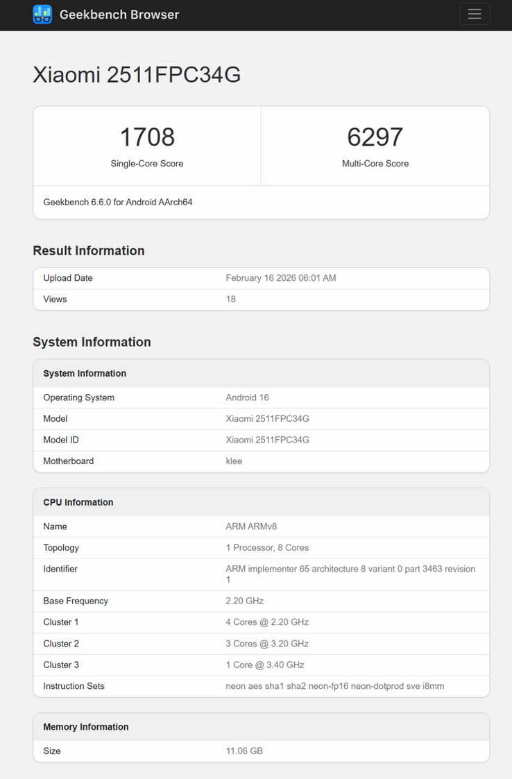 Em vez disso, todas as listagens do Geekbench mencionam 2511FPC34G, um número de modelo cujo sufixo G indica um lançamento global. Com os vazamentos anteriores em mente, é mais provável que o dispositivo avaliado seja o Poco X8 Pro do que o suposto Poco X8 Pro Max. Além disso, o Geekbench identifica que o 2511FPC34G apresenta um chipset da série Dimensity 8500, em vez do Dimensity 9500s no qual o Poco X8 Pro Max é supostamente baseado.