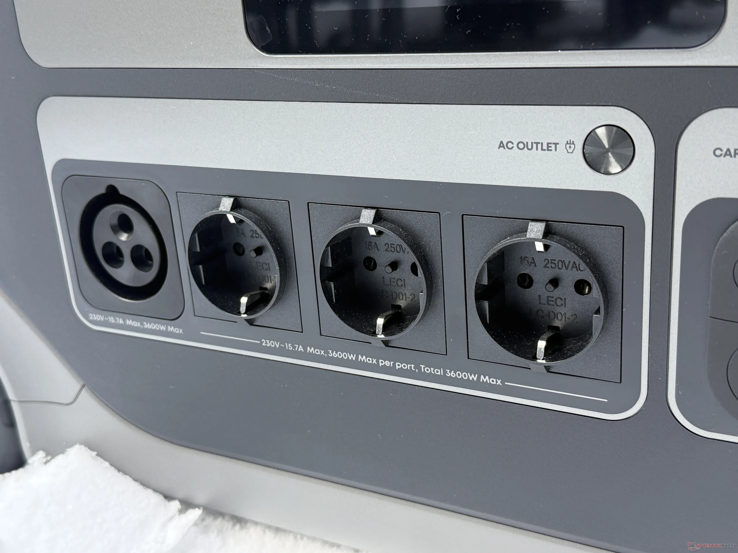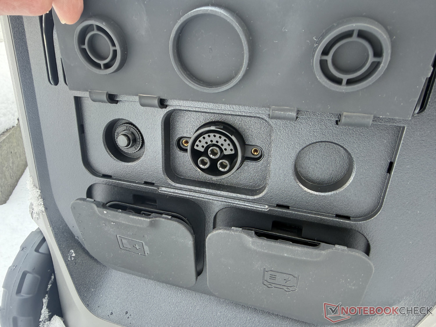No lado da entrada, o Anker Solix F3000 oferece ainda mais opções do que seus irmãos menores da série C. Em vez de um plugue IEC, ele tem sua própria conexão de plugue que pode fornecer até 2.990 W para uma tomada e um máximo de 3.600 W por meio de uma estação de carregamento de veículos elétricos.