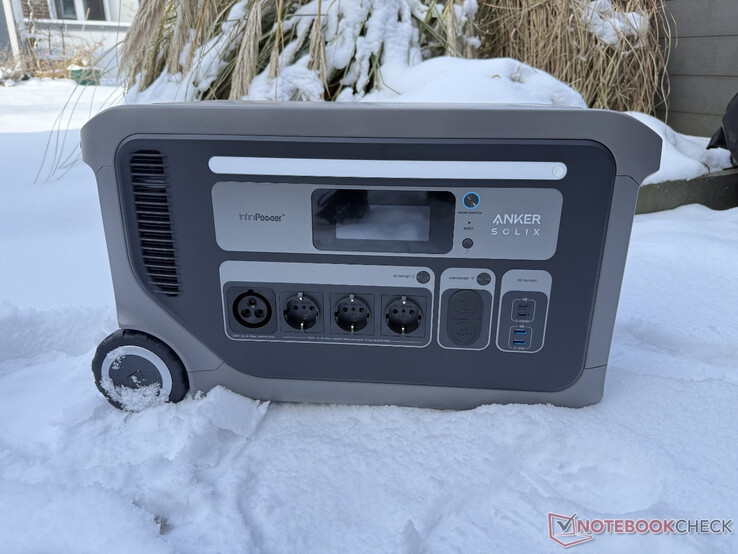 O Anker Solix F3000 é uma enorme estação de energia. Ao contrário da série C, ela é adequada principalmente para uso em casa, por exemplo, para se preparar para uma queda de energia. Ela também pode ser usada em acampamentos móveis e similares, mas com seus mais de 40 kg não é nada leve e, apesar da função de carrinho, não é tão fácil de transportar.