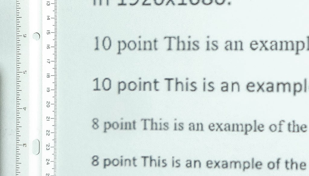 Quando conectado a um computador, o texto de quatro pontos e maior é legível, de modo que o TCL C1 pode ser usado como um monitor de PC externo. Os pixels ficam visíveis quando o usuário se aproxima da imagem projetada a 1 m (3,3 pés) ou menos, mas geralmente não são perceptíveis em distâncias normais de visualização. A pixelização se torna intrusiva em textos menores, com menos de seis pontos de tamanho. As rampas de cinza não são perfeitamente suaves, mas as faixas de cores visíveis geralmente se limitam a sombras escuras e áreas planas de cor.