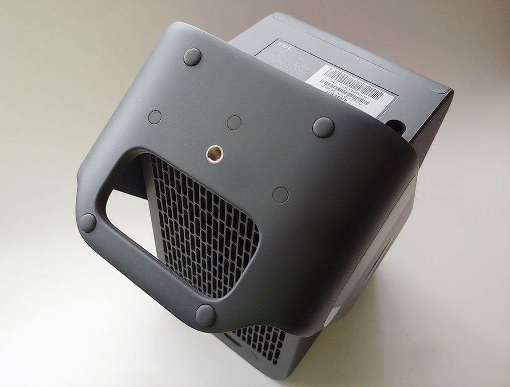 O TCL C1 tem dimensões semelhantes às de uma torradeira pequena de duas fatias e pesa aproximadamente o mesmo que um litro de leite. Seu corpo de plástico totalmente cinza incorpora bordas arredondadas com um padrão sutil de espinha de peixe modificado que adorna a parte superior e as laterais. Os proprietários terão facilidade para encontrar espaço para esse projetor em mesas pequenas, graças ao tamanho aproximado de uma caixa de CD.