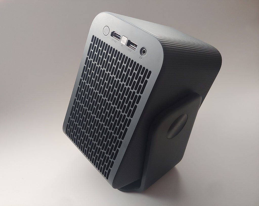O tamanho de CD do projetor o torna ideal para assistir a serviços populares de streaming e canais de TV gratuitos em salas onde o espaço é escasso. Como desvantagem, o projetor não pode ser usado em áreas muito iluminadas e requer o download manual de aplicativos de espelhamento de smartphone.