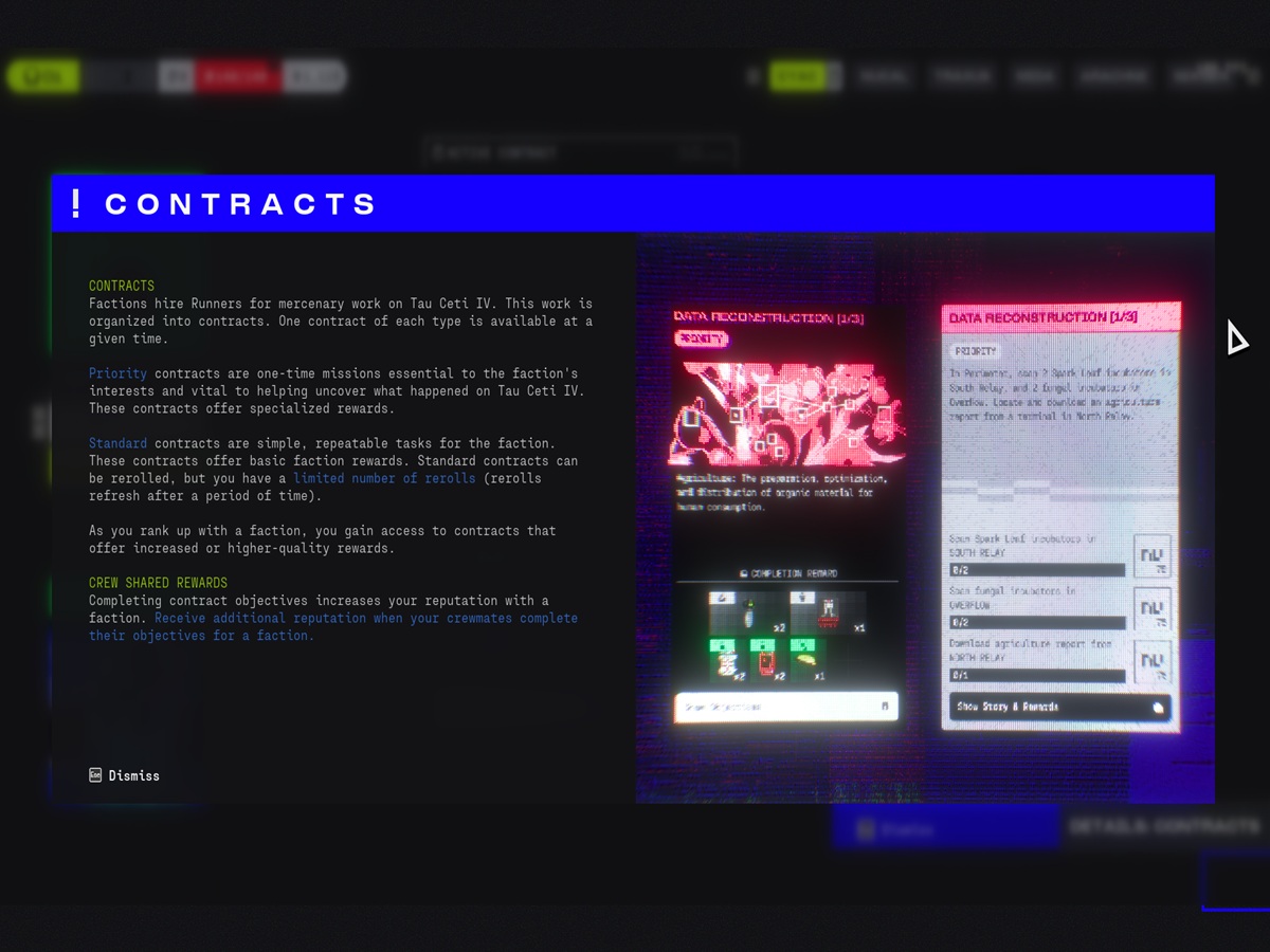A ideia estrutural mais forte de Marathon até o momento é o sistema de contratos orientado por facções. As facções contratam Runners para trabalhar em Tau Ceti IV, e esse trabalho é dividido em contratos prioritários e padrão. Os contratos prioritários são trabalhos únicos ligados aos interesses da facção e ao mistério do que aconteceu em Tau Ceti IV, enquanto os contratos padrão funcionam como tarefas repetitivas com recompensas mais rotineiras.