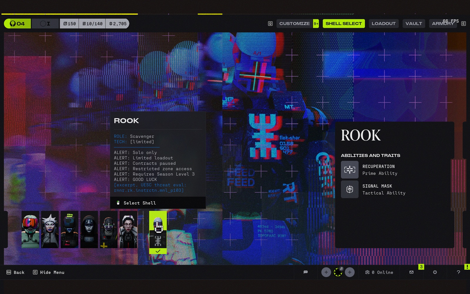 Um dos detalhes mais interessantes é o Rook, um escudo de limpeza exclusivo que pode participar de corridas já em andamento. O Rook só pode entrar na fila sozinho, chega com um equipamento básico e não pode concluir contratos de facção porque as facções não patrocinam protótipos de conchas. É uma adição inteligente, pois sugere que a Bungie está pensando em sistemas de recuperação e reentrada, e não apenas em corridas idealizadas de kit completo.