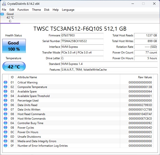 | Chuwi CoreBook Air R5 6600H, Radeon 660M, TWSC TSC3AN512-F6Q10S, IPS, 1920x1200, 14" | HP Omnibook 5 14 SD X Plus X1P-42-100, Adreno X1-45 1.7 TFLOPS, Samsung PM9C1 MZVL81T0HELB-00BTW, OLED, 1920x1200, 14" | Lenovo IdeaPad Slim 5-15ARP G10 R7 7735HS, Radeon 680M, Western Digital PC SN5000S SDEPMSJ-512G, IPS, 1920x1200, 15.3" | Ninkear S14, 16+1TB R5 7535HS, Radeon 660M, Faspeed P8-1TB-LB1, , 2240x1400, 14" | Asus ExpertBook B1 B1403CVA i5-13420H, UHD Graphics Xe G4 48EUs, Western Digital PC SN5000S SDEQNSJ-512G-1002, IPS, 1920x1080, 14" | Chuwi CoreBook X R5 7430U, Vega 7, AirDisk APF 10-512G, IPS, 2160x1440, 14" | Média AMD Radeon 660M | Média da turma Subnotebook | |