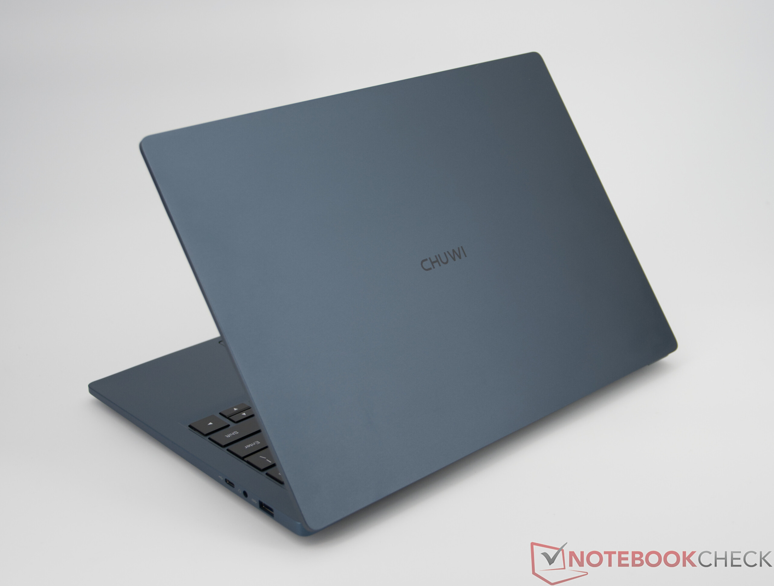 A Chuwi utiliza uma combinação de metal e plástico para o CoreBook Air, o que mantém o notebook agradavelmente leve e fácil de transportar. Apesar do baixo peso, a caixa é solidamente estável no uso diário, mesmo que as superfícies possam ceder um pouco sob forte pressão. No geral, o acabamento deixa uma impressão decente e está em um nível que corresponde à faixa de preço. As conexões existentes são bastante funcionais, mas cobrem de forma confiável os requisitos mais importantes no uso diário.