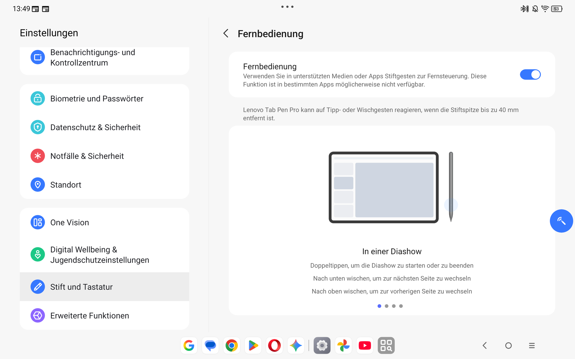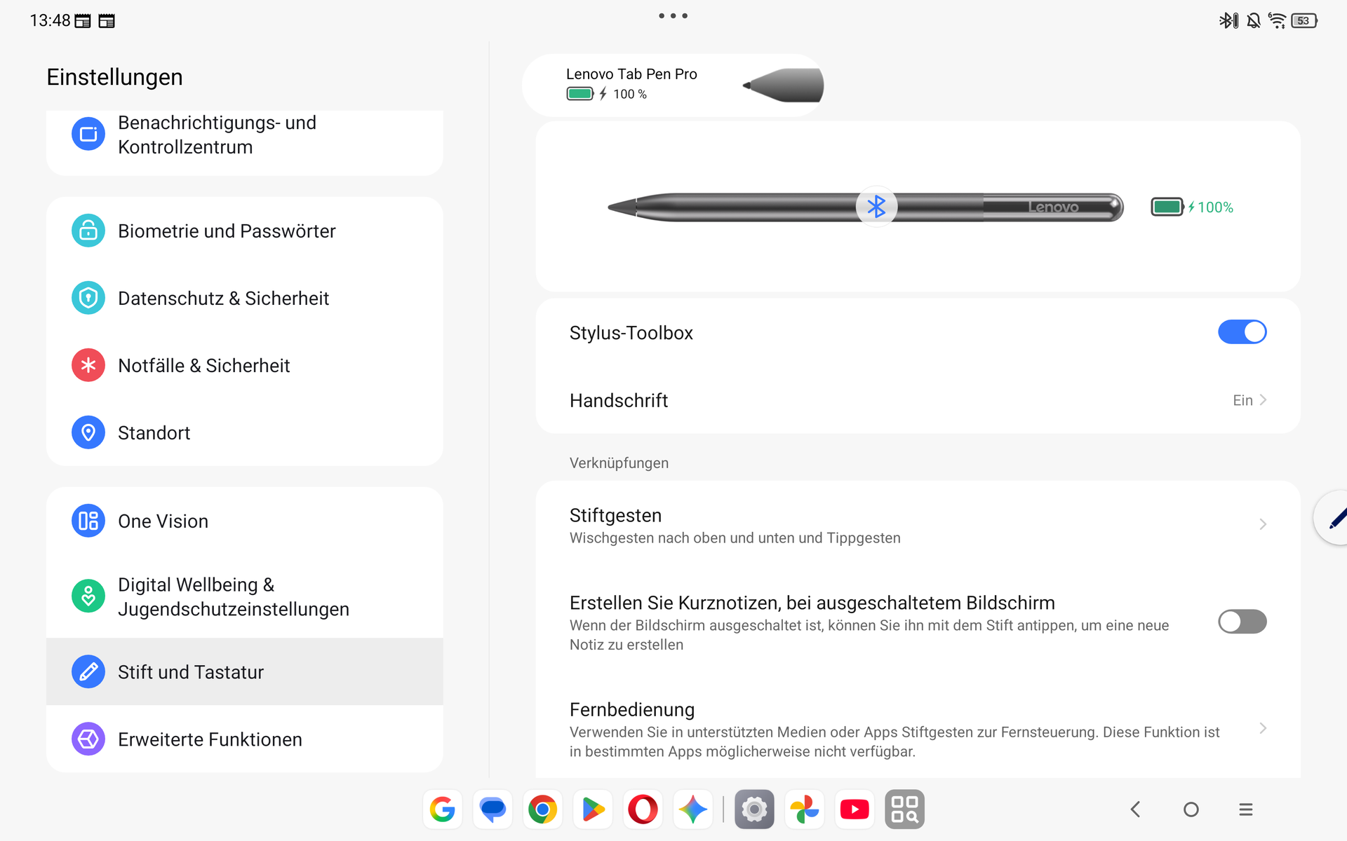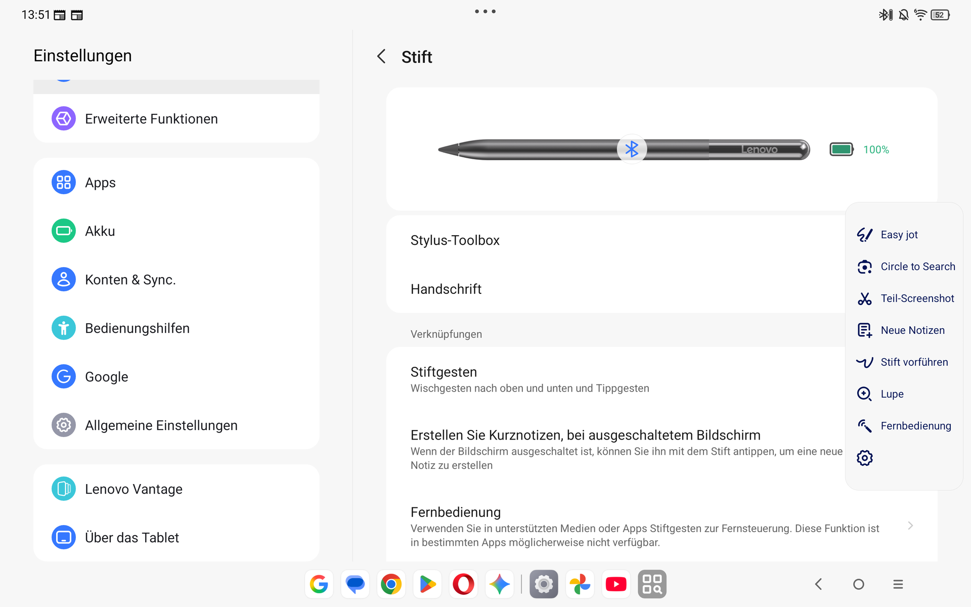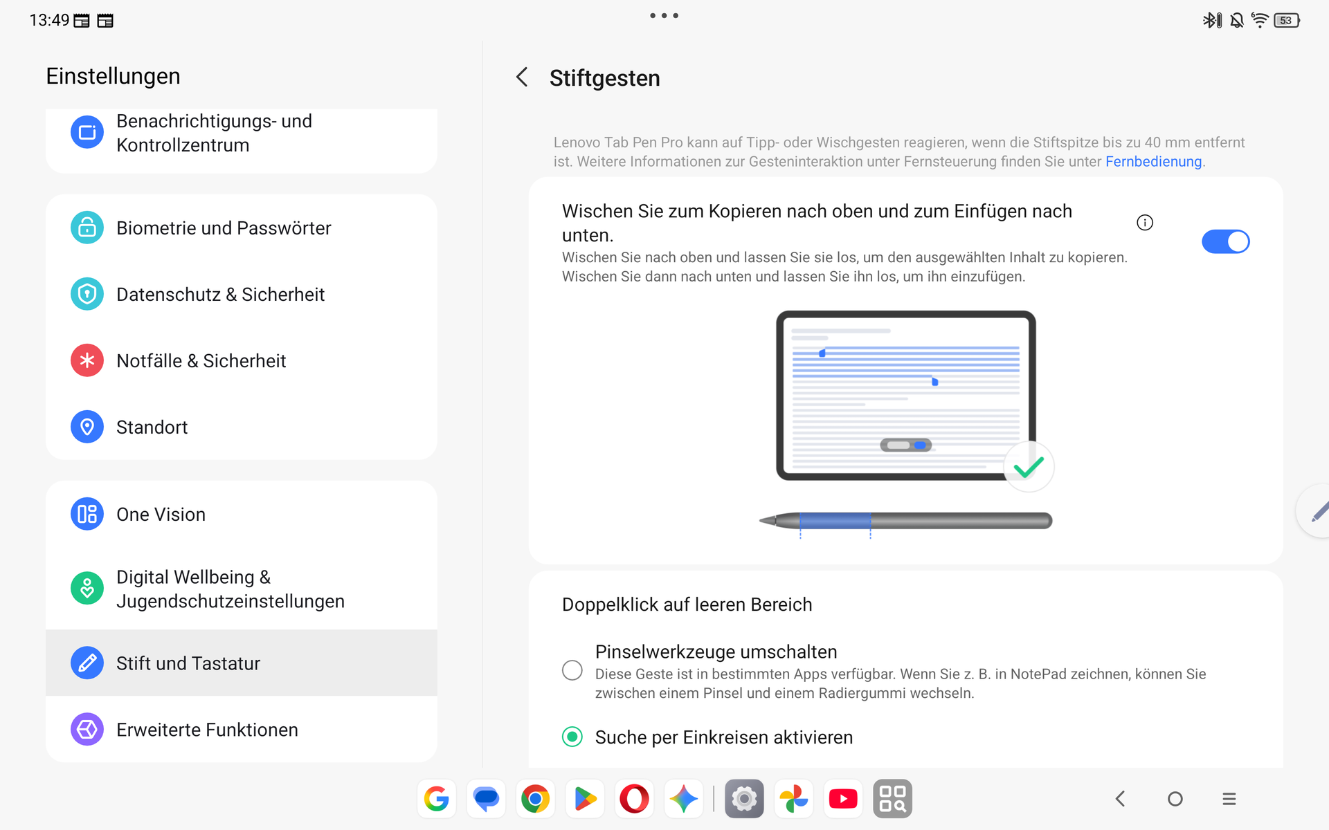 Além das funções de IA, como o Circle to Search, a interface ZUI17 também oferece muitas opções de uso da Lenovo Tab Pen Pro para produtividade. Com a área sensível ao toque na frente do estojo da caneta, os gestos podem ser usados para selecionar a barra de ferramentas, por exemplo. Isso funciona de forma muito confiável no uso diário.