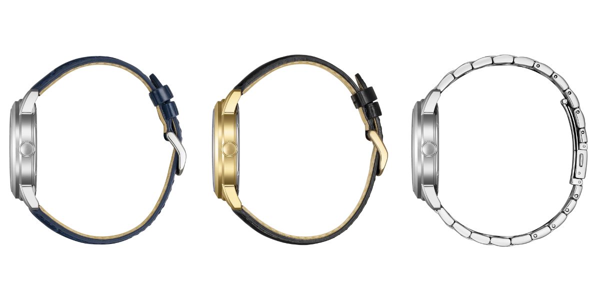 O Citizen AW0151-00LC tem um esquema de cores azul e prata, com um mostrador azul escuro texturizado e uma pulseira de couro combinando. Sua caixa é de aço inoxidável prateado, assim como a fivela da pulseira. O AW0153-04AC é outro modelo com pulseira de couro, desta vez com uma pulseira preta. Esse relógio tem um mostrador branco/creme e uma caixa de aço inoxidável em tom dourado. Os dois últimos modelos, o AW0151-85EC e o AW0151-85XCambos apresentam caixa e pulseiras de aço inoxidável prateadas. No entanto, o AW0151-85EC tem um mostrador preto texturizado, e o AW0151-85XC tem um mostrador verde com um padrão semelhante.