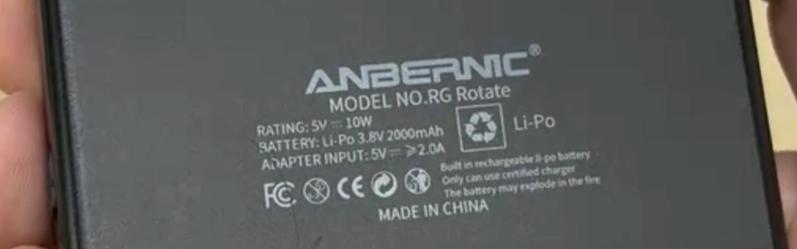 Incorporada abaixo, a imagem também confirma que o RG Rotate terá uma bateria de 3,8 V com capacidade típica de 2.000 mAh. Surpreendentemente, isso é menor do que as baterias do RG34XX SP ou RG35XX SP (atualmente, US$ 69 na Amazon). No entanto, o RG Rotate suporta carregamento de 10 W a 5V/2A. Portanto, o RG Rotate não deve apresentar os mesmos problemas de carregamento dos dispositivos portáteis mais baratos da Anbernic que atingem o máximo de a 5V/1,5A.