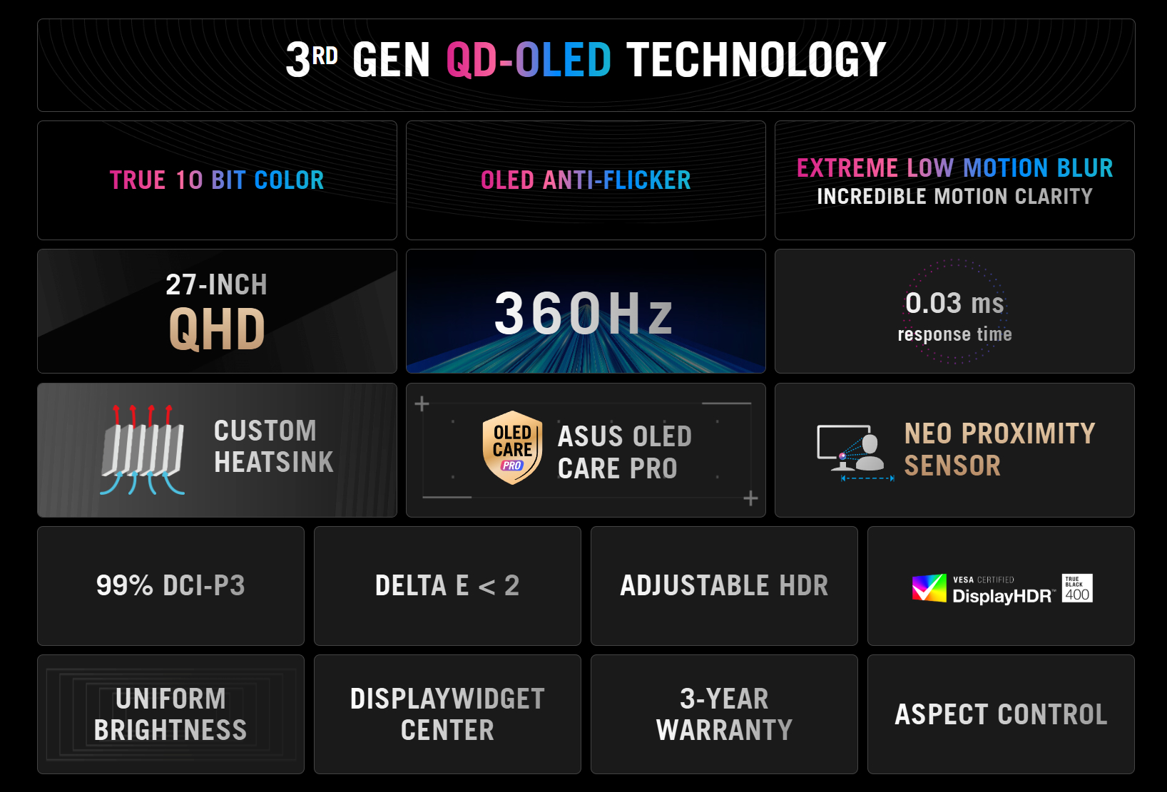 Pelo que podemos dizer, o ROG Strix OLED XG27AQDNG adiciona o sensor Neo Proximity da Asus para limitar ainda mais a queima do OLED por meio de uma melhor detecção de presença. Além disso, o monitor suporta o OLED Care Pro, um conjunto de tecnologias que supostamente supera as tecnologias OLED Care Plus mais antigas da Asus. Embora o preço e a disponibilidade permaneçam desconhecidos, mais detalhes sobre o ROG Strix OLED XG27AQDNG podem ser encontrados em no site global da Asus.