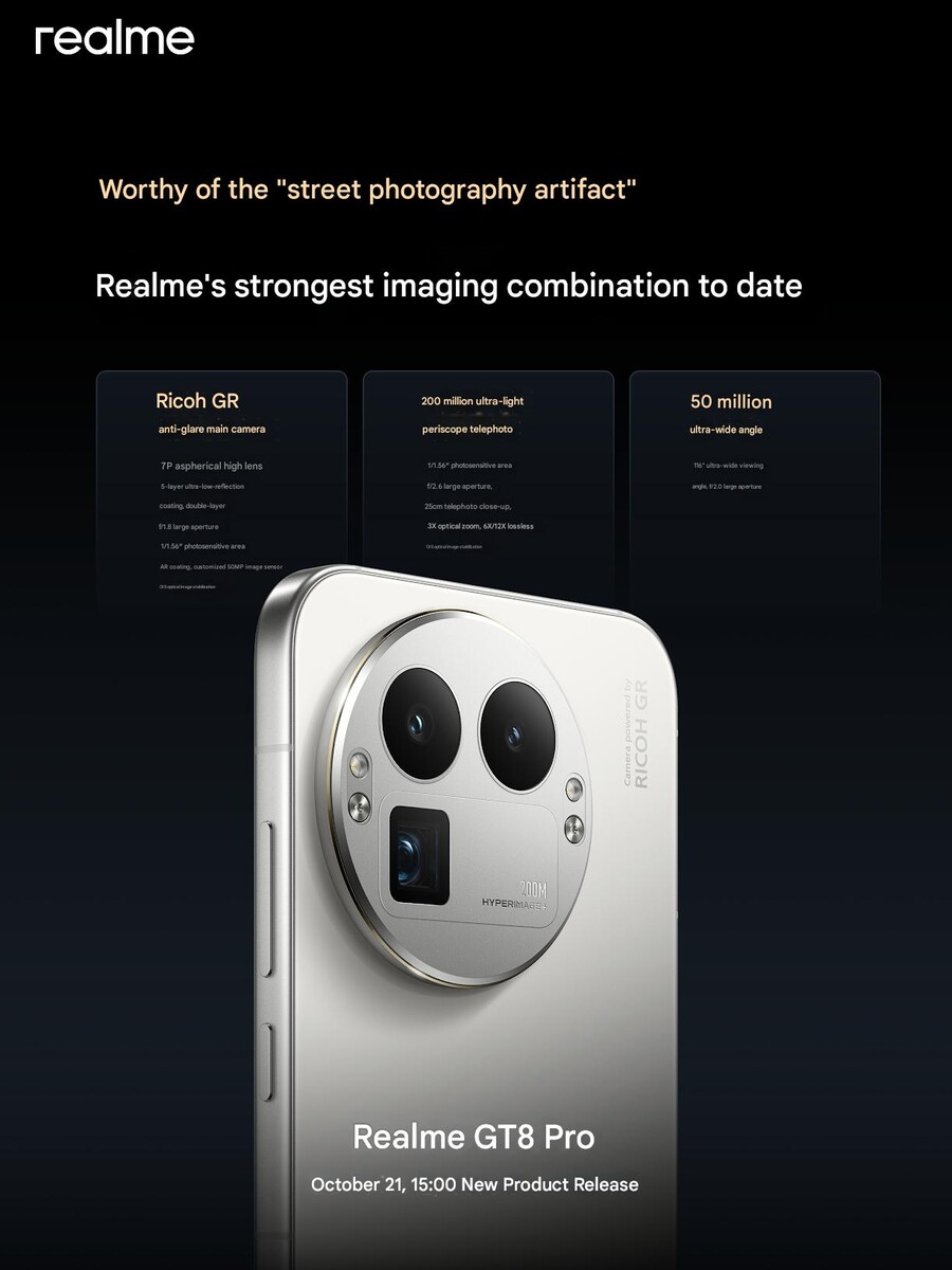 O vice-presidente da Realme tem sido muito ativo no Weibo nos últimos dias e compartilhou muitas especificações técnicas do Realme GT 8 Pro antes que o carro-chefe da câmera Ricoh GR seja oficialmente apresentado em 21 de outubro. Alguns detalhes e o SoC Snapdragon 8 Elite Gen 5 já foram confirmados, e há mais informações em termos de especificações de bateria, chassi, câmeras e alguns outros aspectos do próximo smartphone Realme.