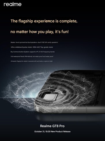 Em cartazes teaser adicionais, a Realme também anuncia um novo sistema de som, melhor conectividade 5G com suporte para 21 bandas 5G e um sensor de impressão digital ultrassônico no display. Por último, mas não menos importante, a empresa também promete uma atualização para a nova interface de usuário Android, Realme UI 7.0. Quatro anos de atualizações do Android e cinco anos de atualizações de segurança podem não parecer tão impressionantes quanto os sete anos da Samsung, mas isso é bastante respeitável para o mercado chinês, já que esses fabricantes têm sido bastante hesitantes com as garantias de atualização de software.