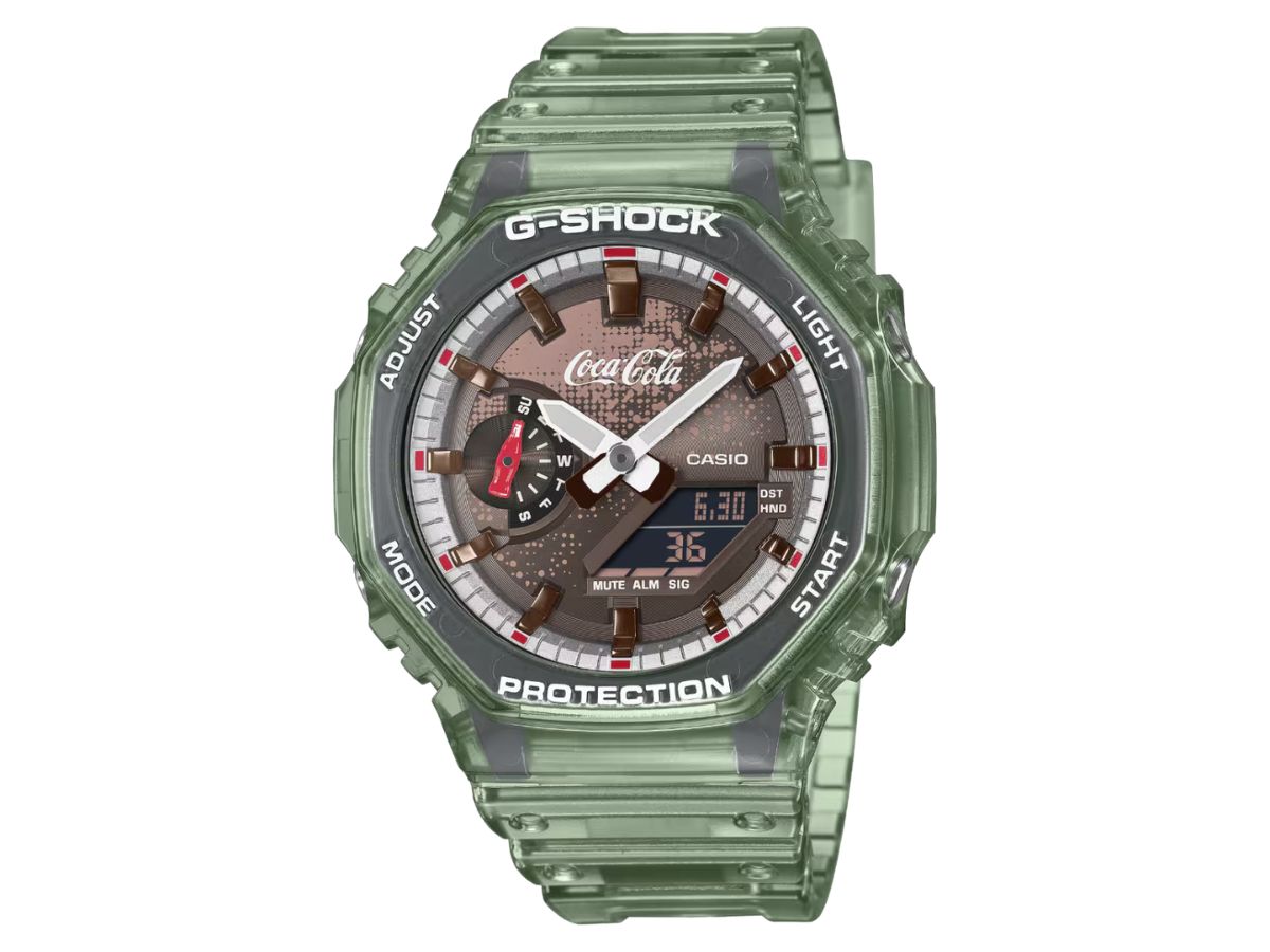 A Casio revelou oficialmente o novo relógio da colaboração G-Shock x Coca-Cola. Divulgado anteriormente em abril de 2026ele é baseado no híbrido GA-2100, comemorando o 140º aniversário do popular refrigerante.