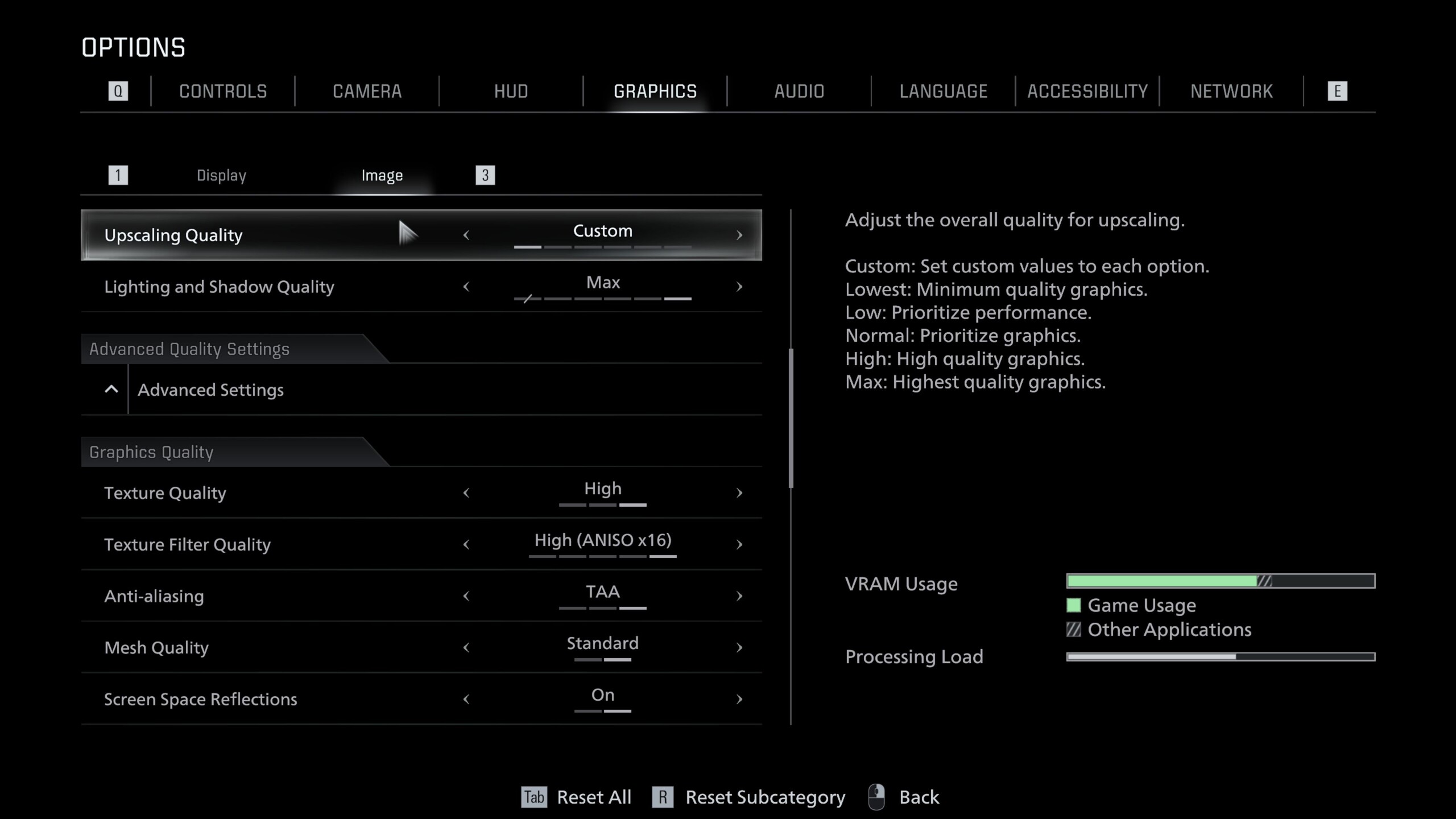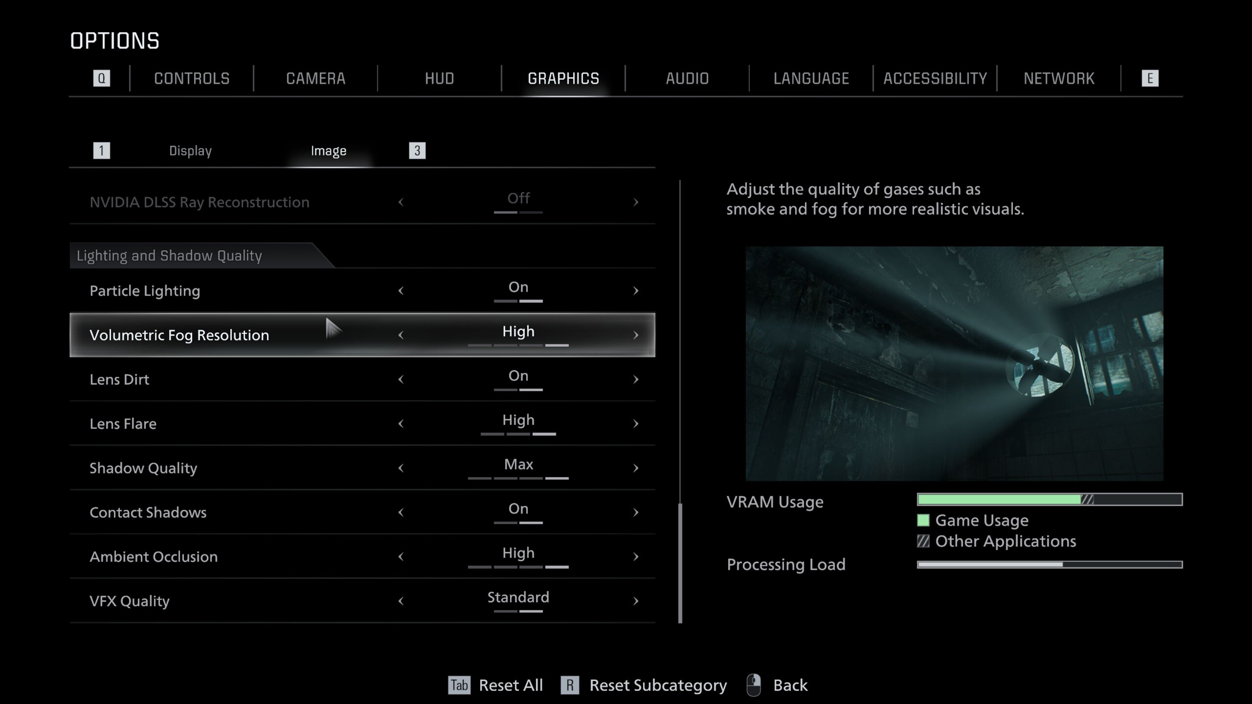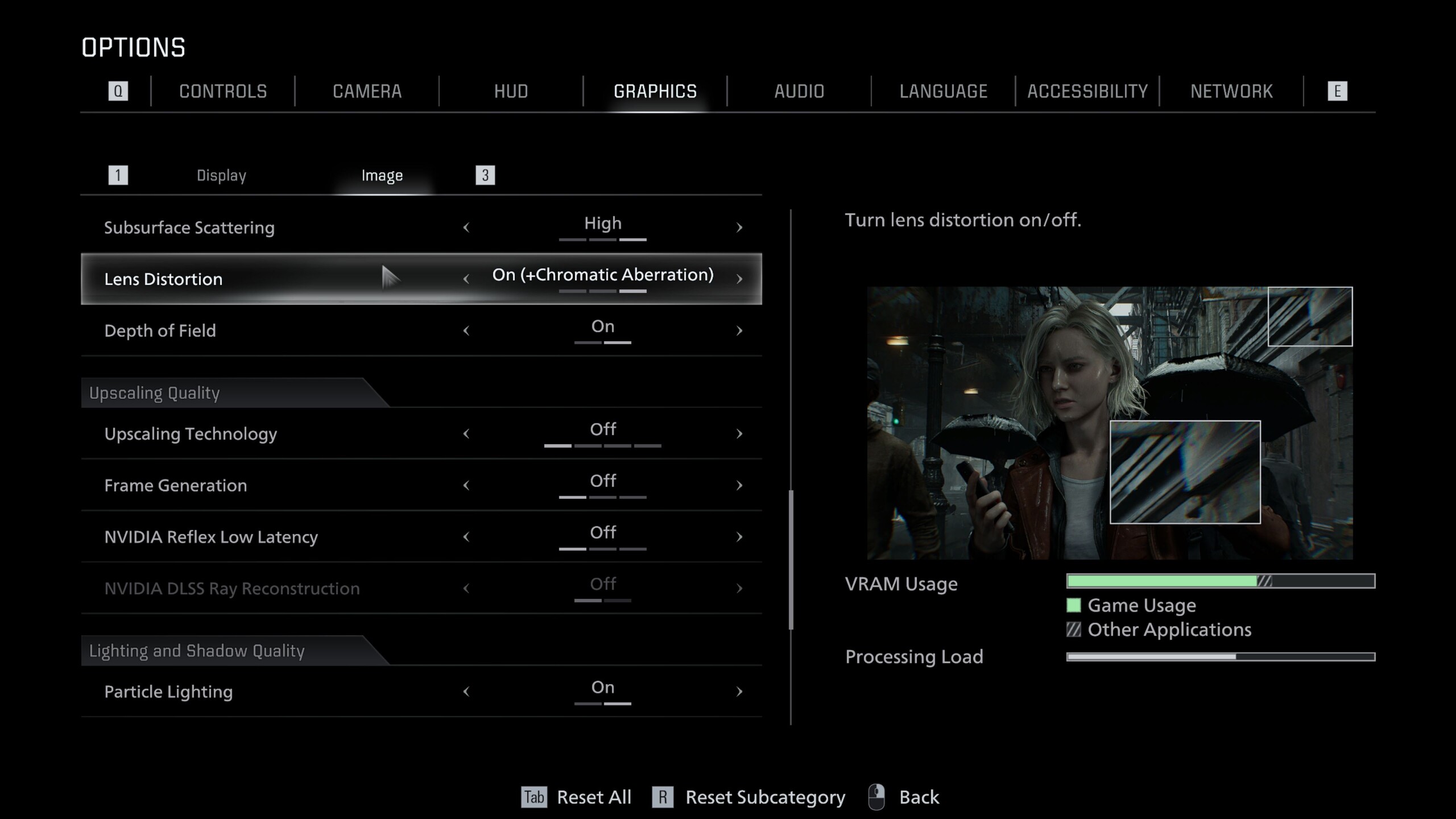 O Resident Evil Requiem foi desenvolvido com base no RE Engine da Capcom, que é repleto de recursos modernos. O menu gráfico extremamente detalhado é dividido nas guias Display e Image, conforme mostrado nas capturas de tela. Ele inclui não apenas opções de upscaling, com suporte para DLSS, FSR e geração de quadros, mas também opções para ray tracing e path tracing.