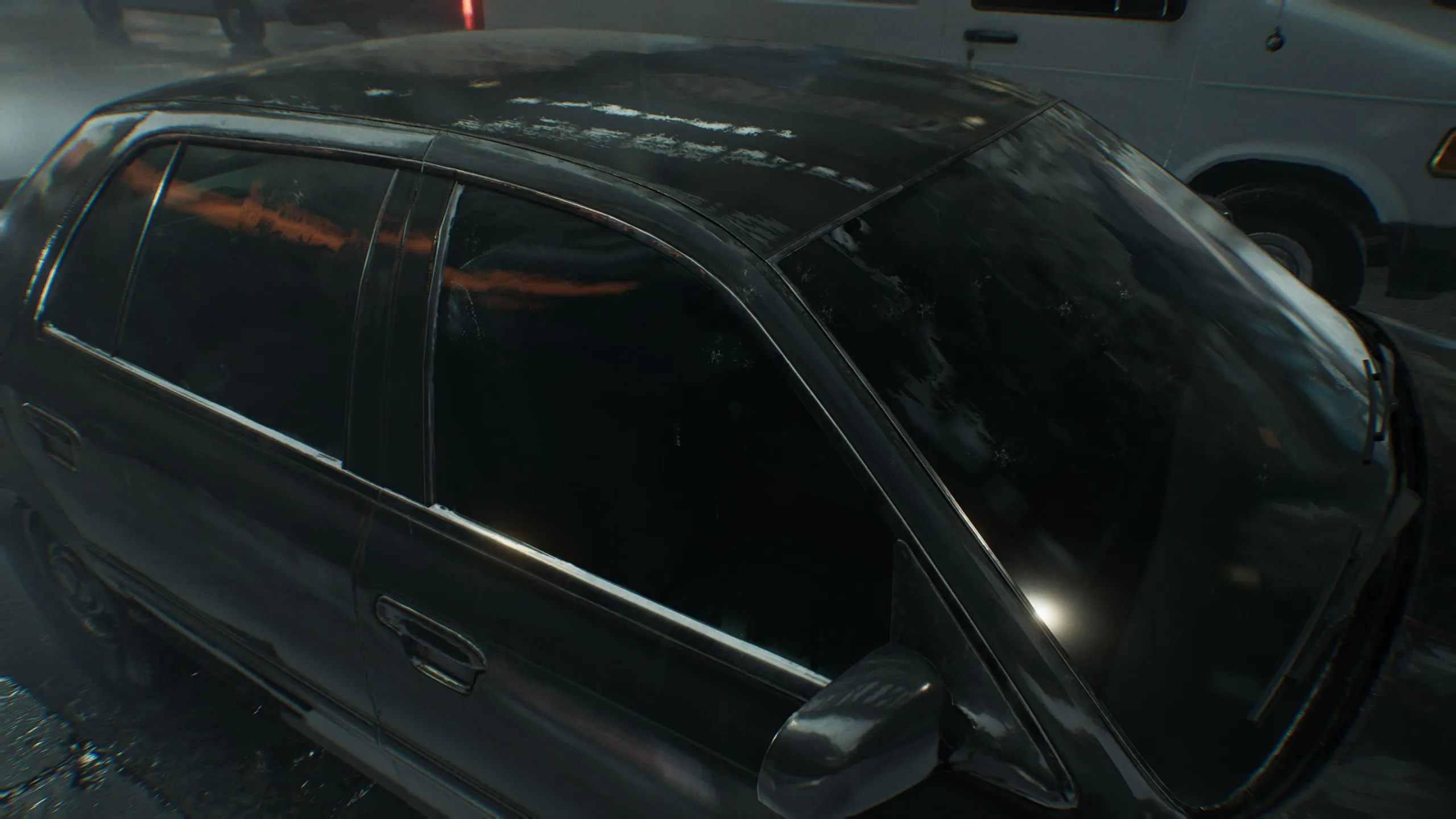 Como mostram as imagens abaixo, o ray tracing já proporciona reflexos muito atraentes, por exemplo, nas janelas dos veículos, e o path tracing os torna ainda mais nítidos. Sem o ray tracing, alguns reflexos desaparecem completamente, o que naturalmente tira o brilho da atmosfera.