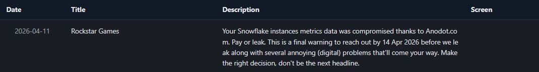 De acordo com RansomLook.io e CyberSec Guruos invasores não comprometeram diretamente o perímetro da Rockstar. Em vez disso, eles supostamente aproveitaram uma integração automatizada por meio da Anodot, uma plataforma de monitoramento de custo de nuvem de terceiros. O grupo alega ter obtido acesso ao ambiente Snowflake da Rockstar (que a empresa usa para armazenar e gerenciar, entre outros dados, seus dados analíticos e a telemetria dos jogadores) coletando tokens de autenticação da Anodot. Usando esse método, os invasores podem contornar a autenticação multifator padrão usando tokens de serviço legítimos que permanecem válidos por longos períodos. Esse tipo de vulnerabilidade da cadeia de suprimentos parece ter se tornado o principal vetor para os ShinyHunters no final de 2025 e início de 2026.