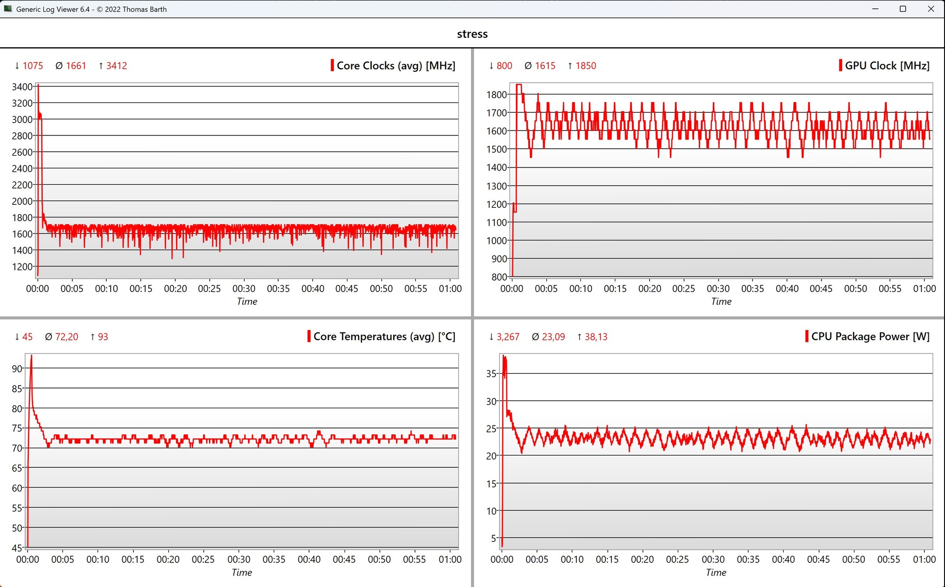 O novo modelo é significativamente mais econômico do que seu antecessor, especialmente no modo inativo, e medimos um máximo de 5,4 watts. Medimos um máximo de 63 watts no teste de estresse, que rapidamente se estabiliza em ~45 watts.