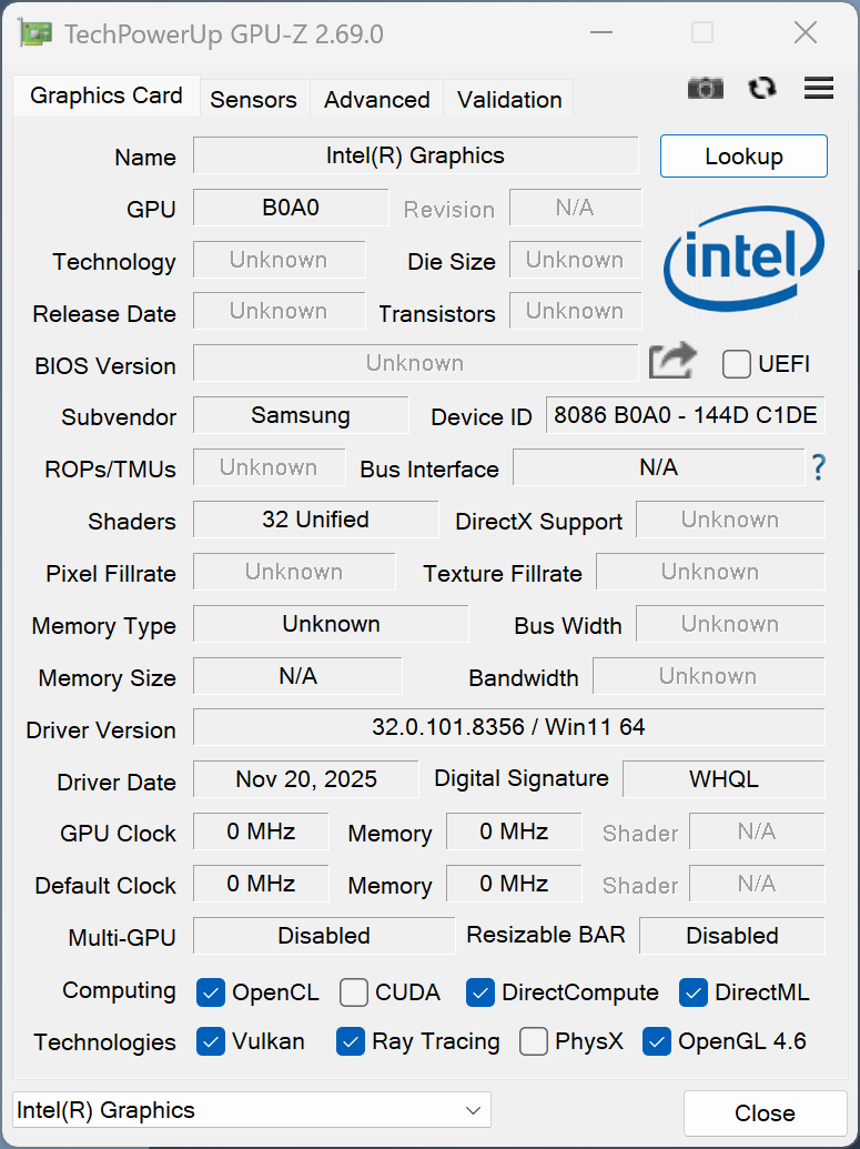 A Samsung atualizou seus modelos Galaxy Book6 Pro e agora usa a mais recente geração de processadores Panther Lake da Intel, além de telas OLED atualizadas. Analisamos o novo modelo de 16 polegadas com o Core Ultra 7 356H em combinação com a Intel Graphics iGPU padrão (4 núcleos Xe ), 32 GB de RAM e um SSD de 512 GB. O modelo de varejo por US$ 2.049 recebe um SSD maior de 1 TB, as outras especificações são idênticas às da nossa unidade de análise.