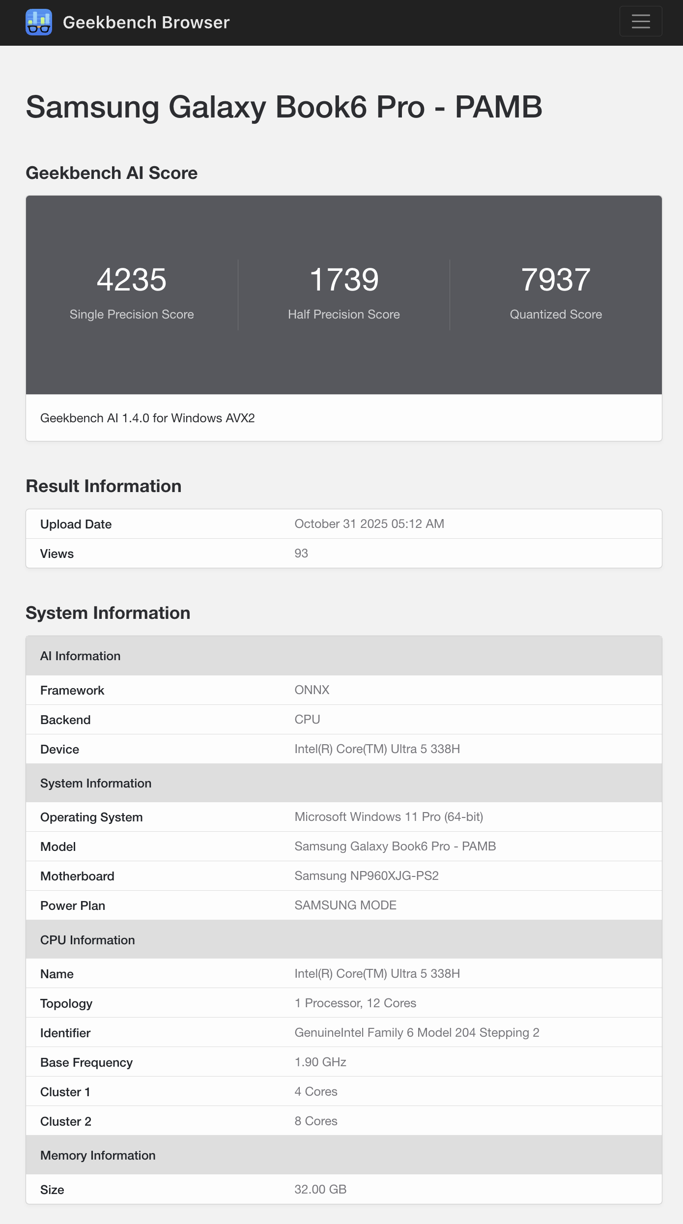 Aparentemente, essas melhorias arquitetônicas e de fabricação também aumentarão o desempenho, que não é o ponto forte do Lunar Lake fora das tarefas pesadas de GPU. Para esse fim, o Core Ultra 5 338H supera facilmente até mesmo o Core Ultra 9 288V no benchmark Geekbench AI 1.4.0, em parte auxiliado pelos 32 GB de RAM presentes também. Com base em vazamentos recentesum aumento da CPU também deve ser acompanhado por ganhos de GPU graças às iGPUs Xe3 da Intel.