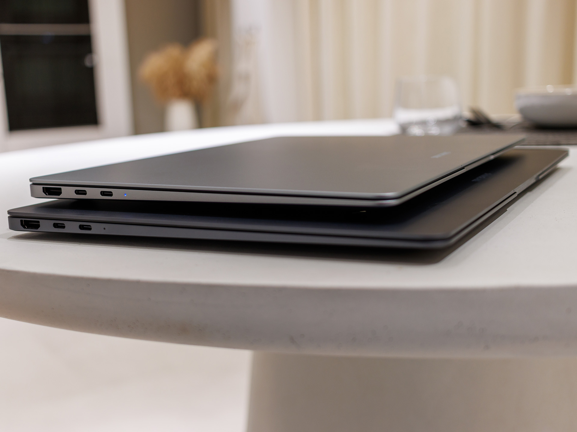 O modelo maior, de 16 polegadas, tem quatro alto-falantes Dolby Atmos, enquanto o menor tem dois. Uma webcam de 2 MPix está integrada em ambos os modelos. A capacidade da bateria é de 78 Wh para o livro de 16 polegadas e 67 Wh para a versão de 14 polegadas.