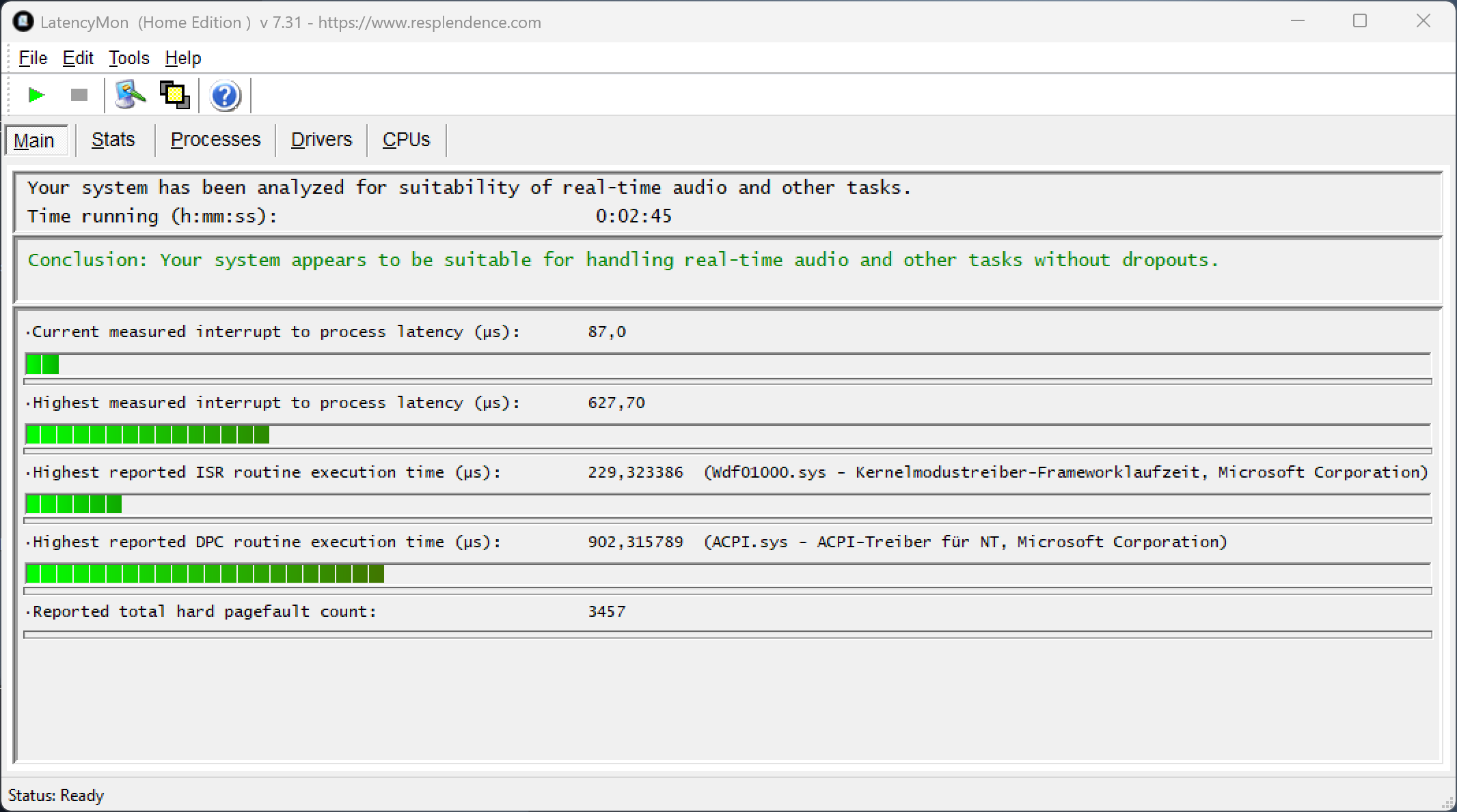 (+) | o som geral é linear (8.7% diferença em relação à mediana)